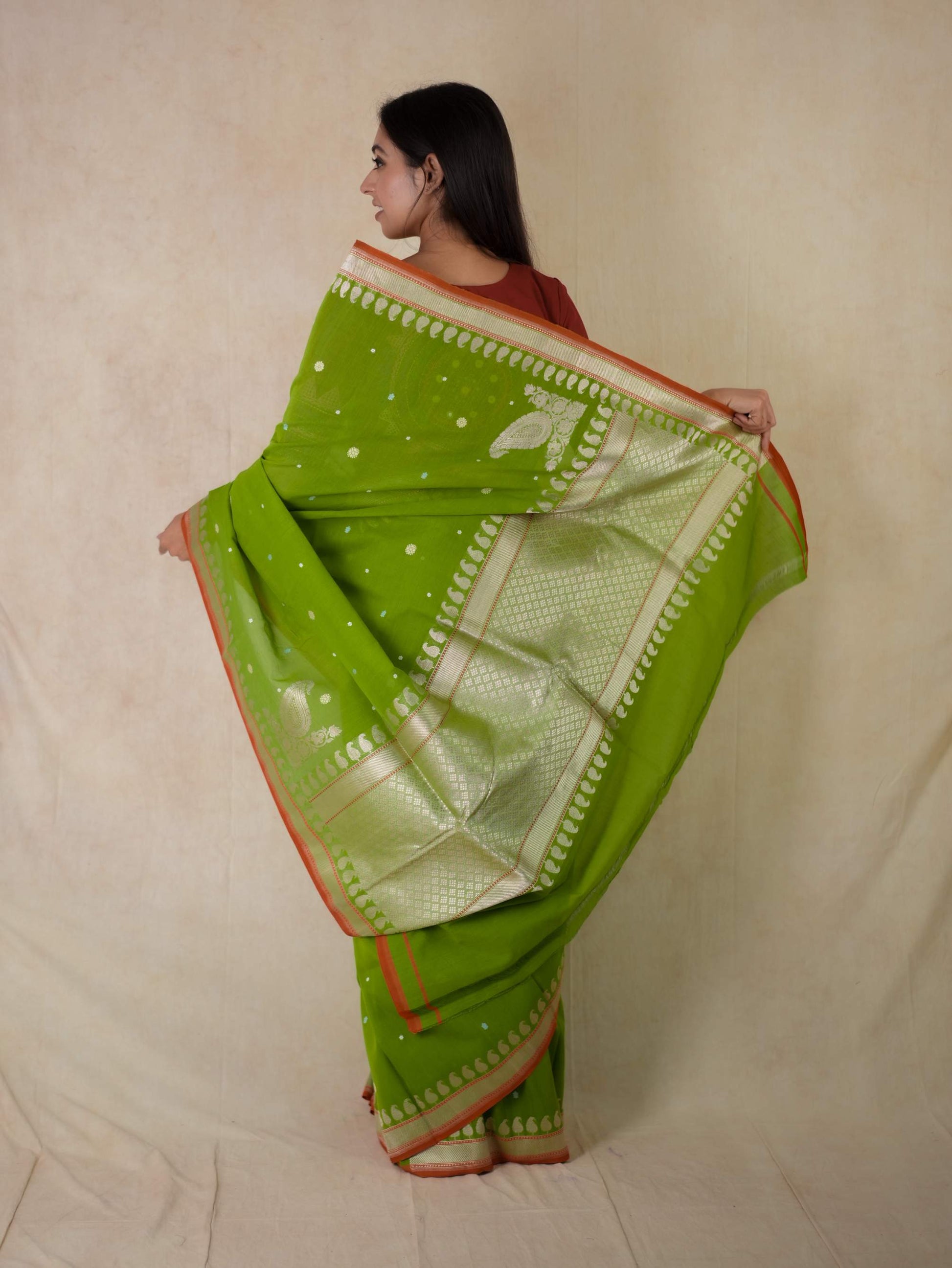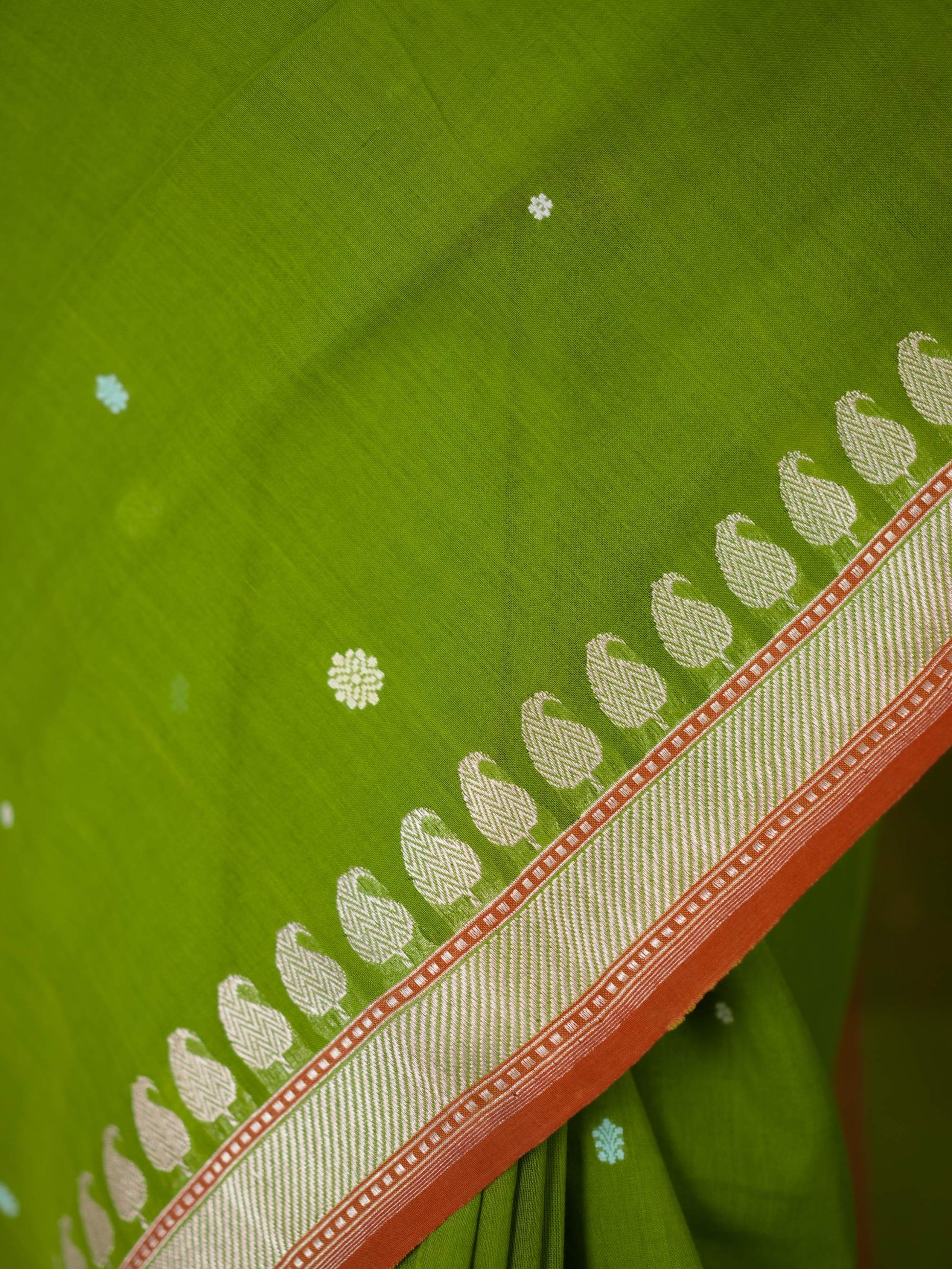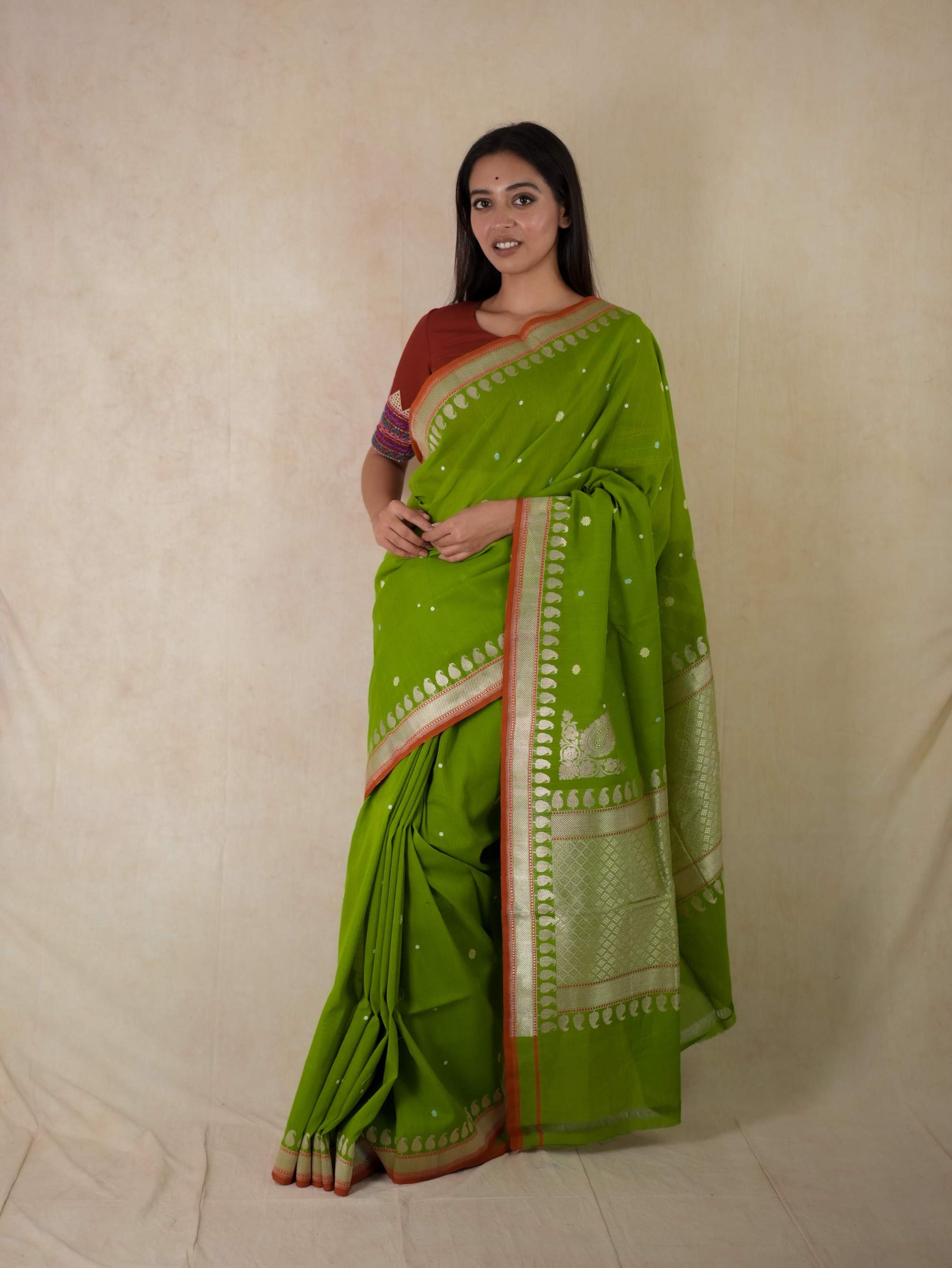 PURE COTTON LIGHT GREEN COLOUR BENARASI SAREE WITH 1.03 M BLOUSE PIECE