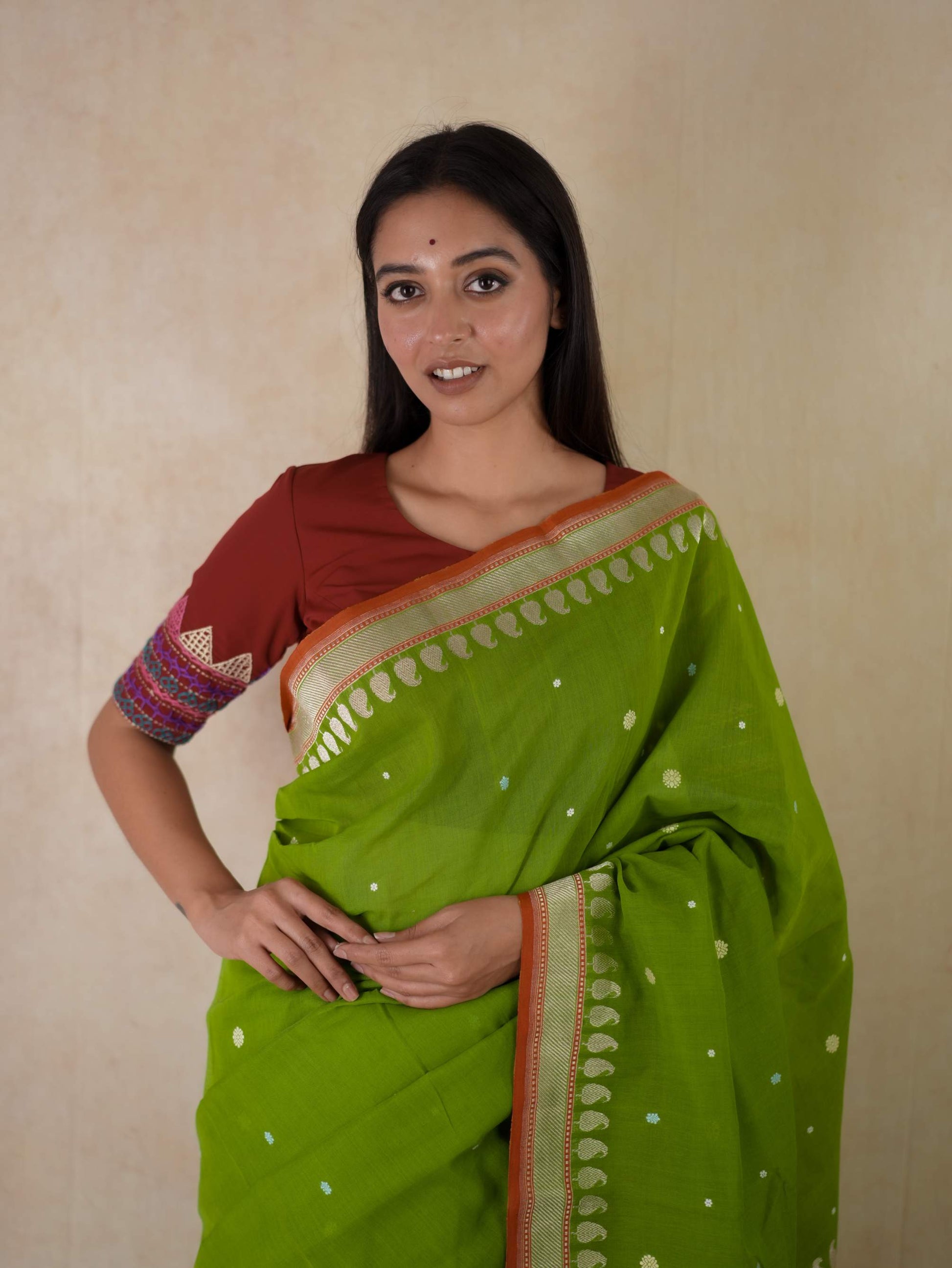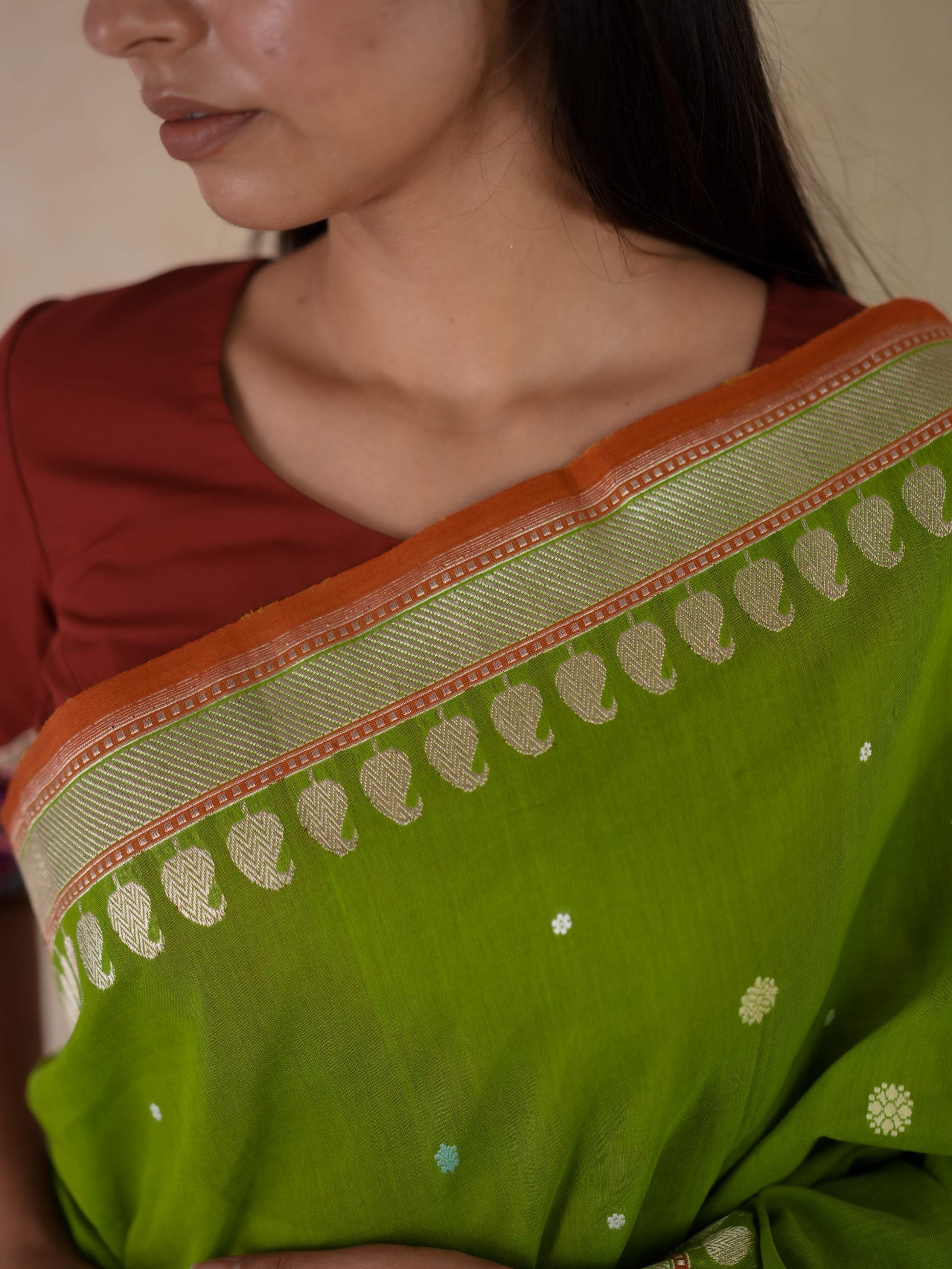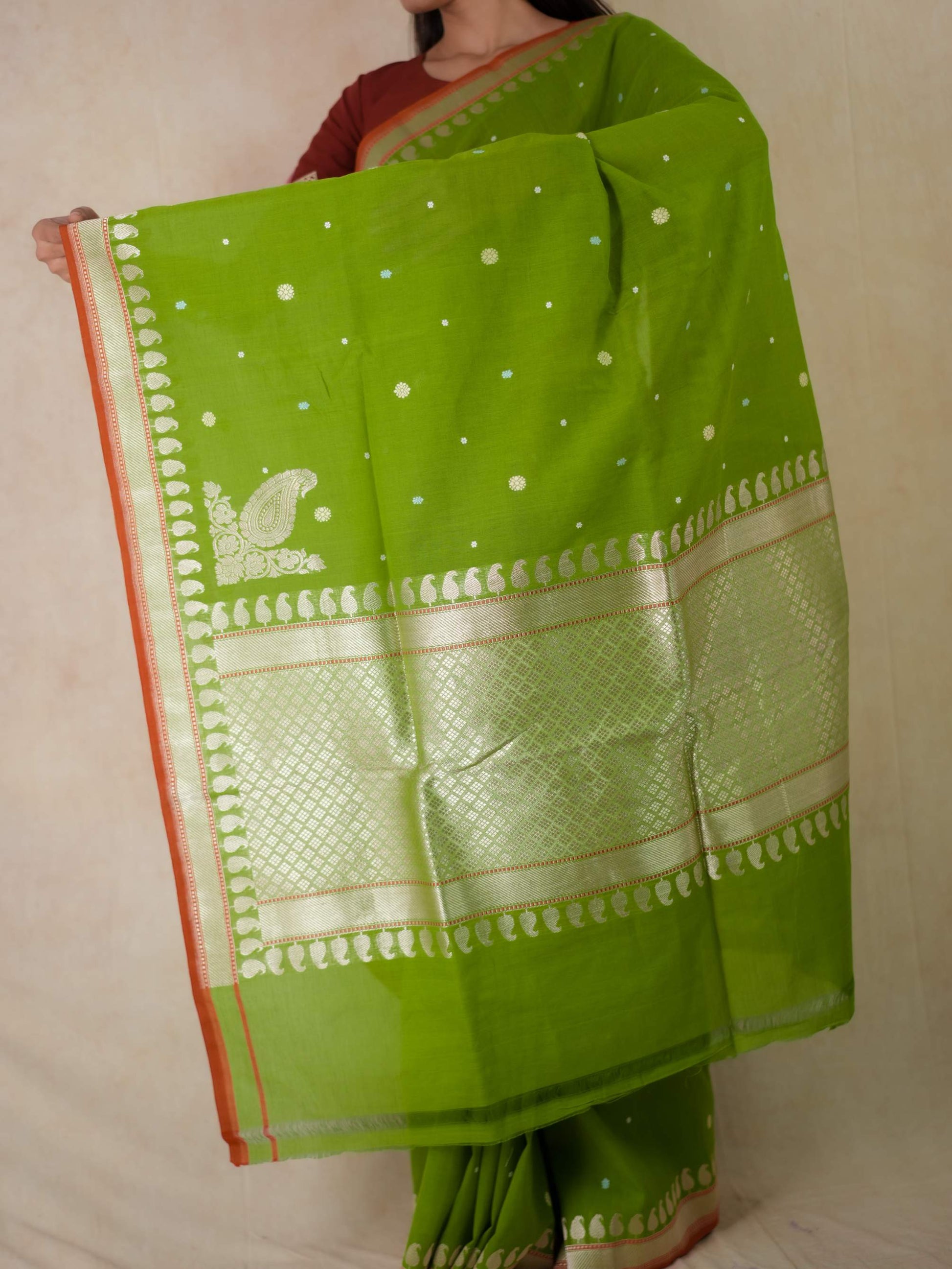 PURE COTTON LIGHT GREEN COLOUR BENARASI SAREE WITH 1.03 M BLOUSE PIECE