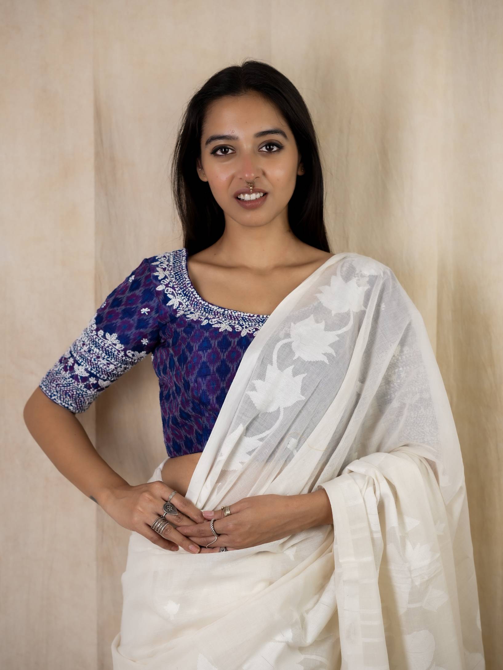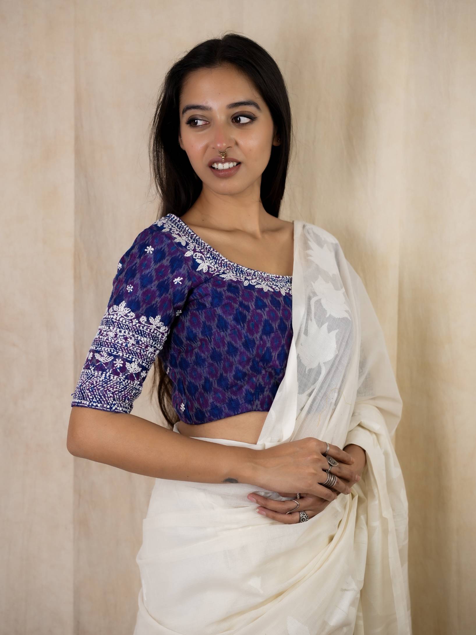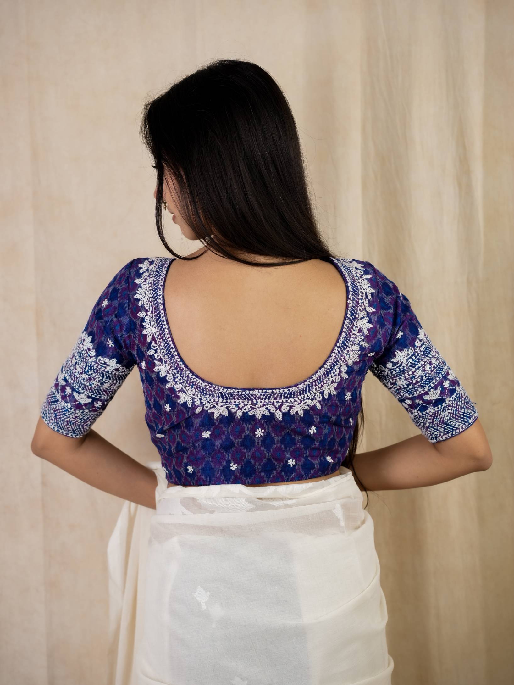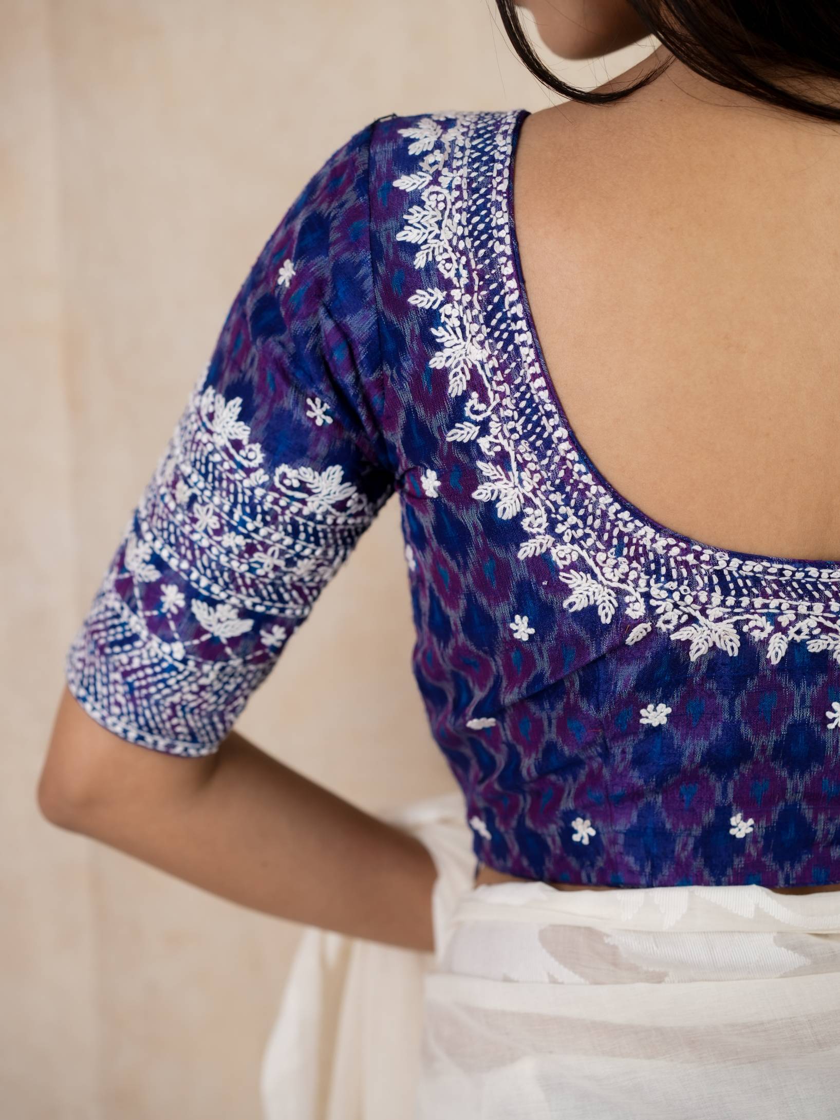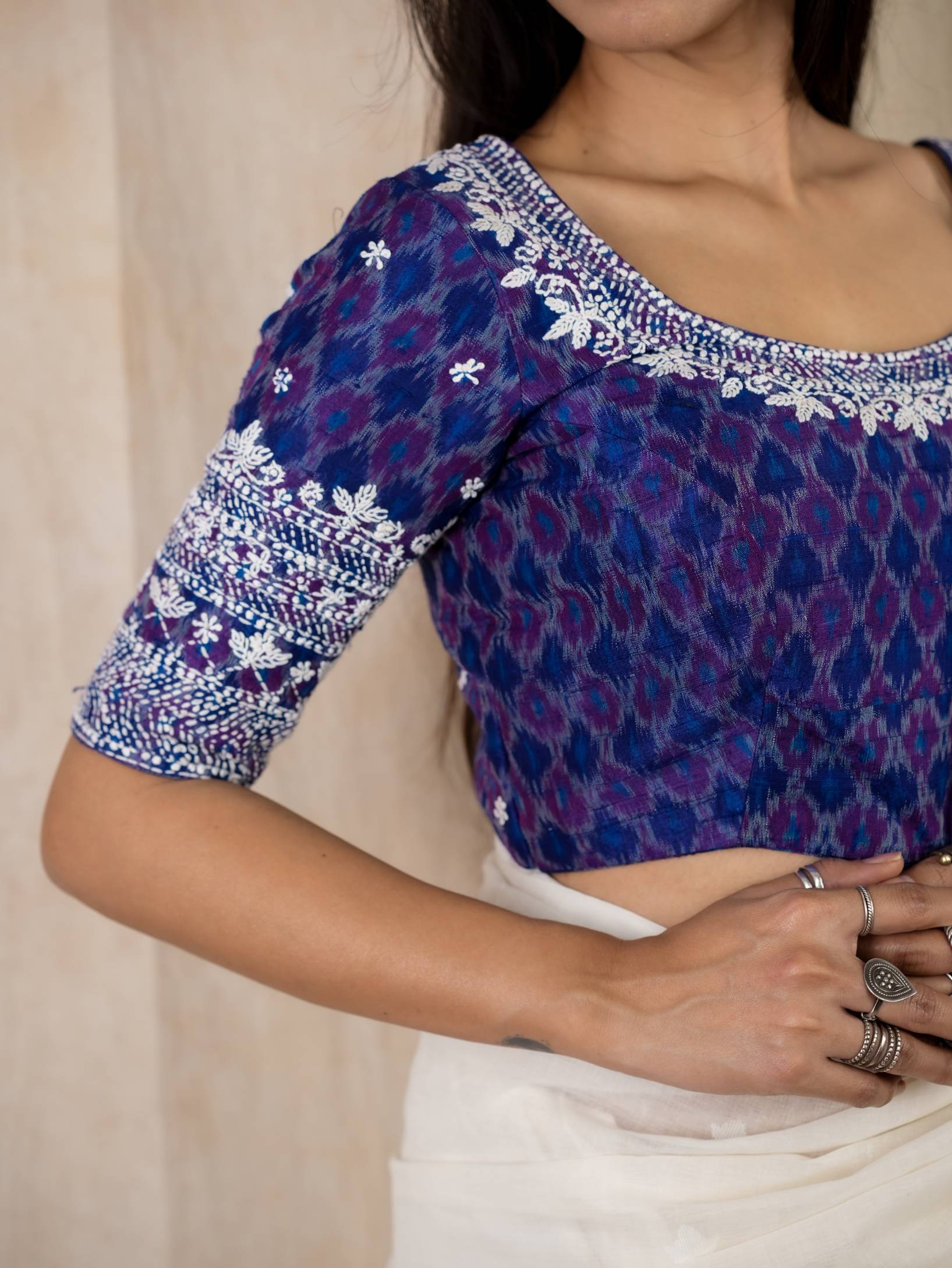 PURE RAW SILK IKAT WITH FLORAL HAND EMBROIDERY