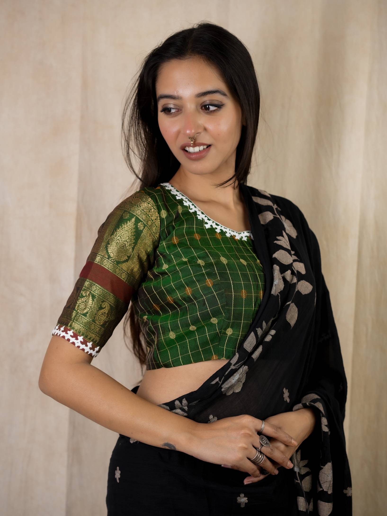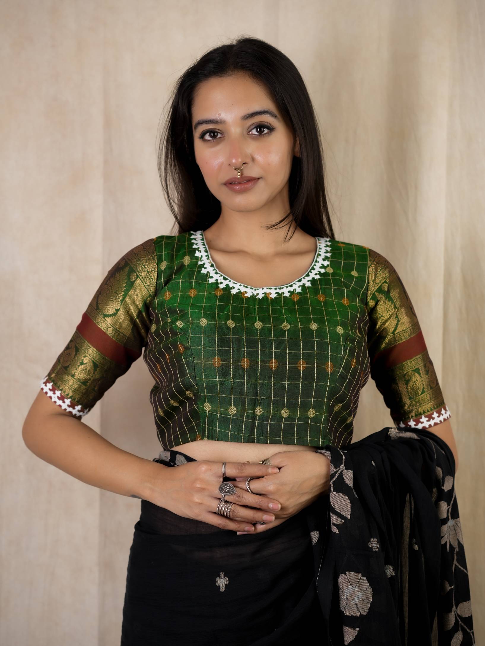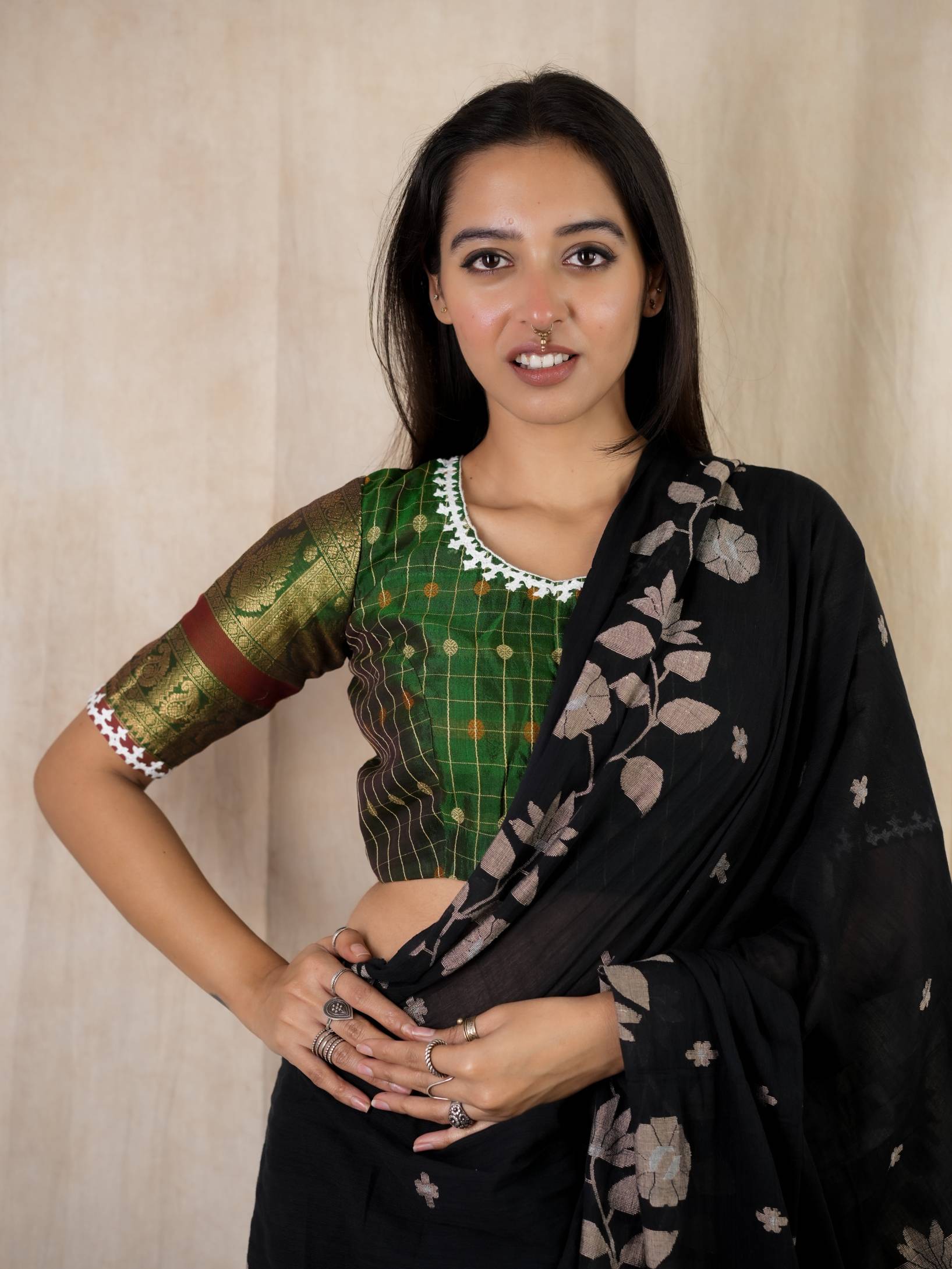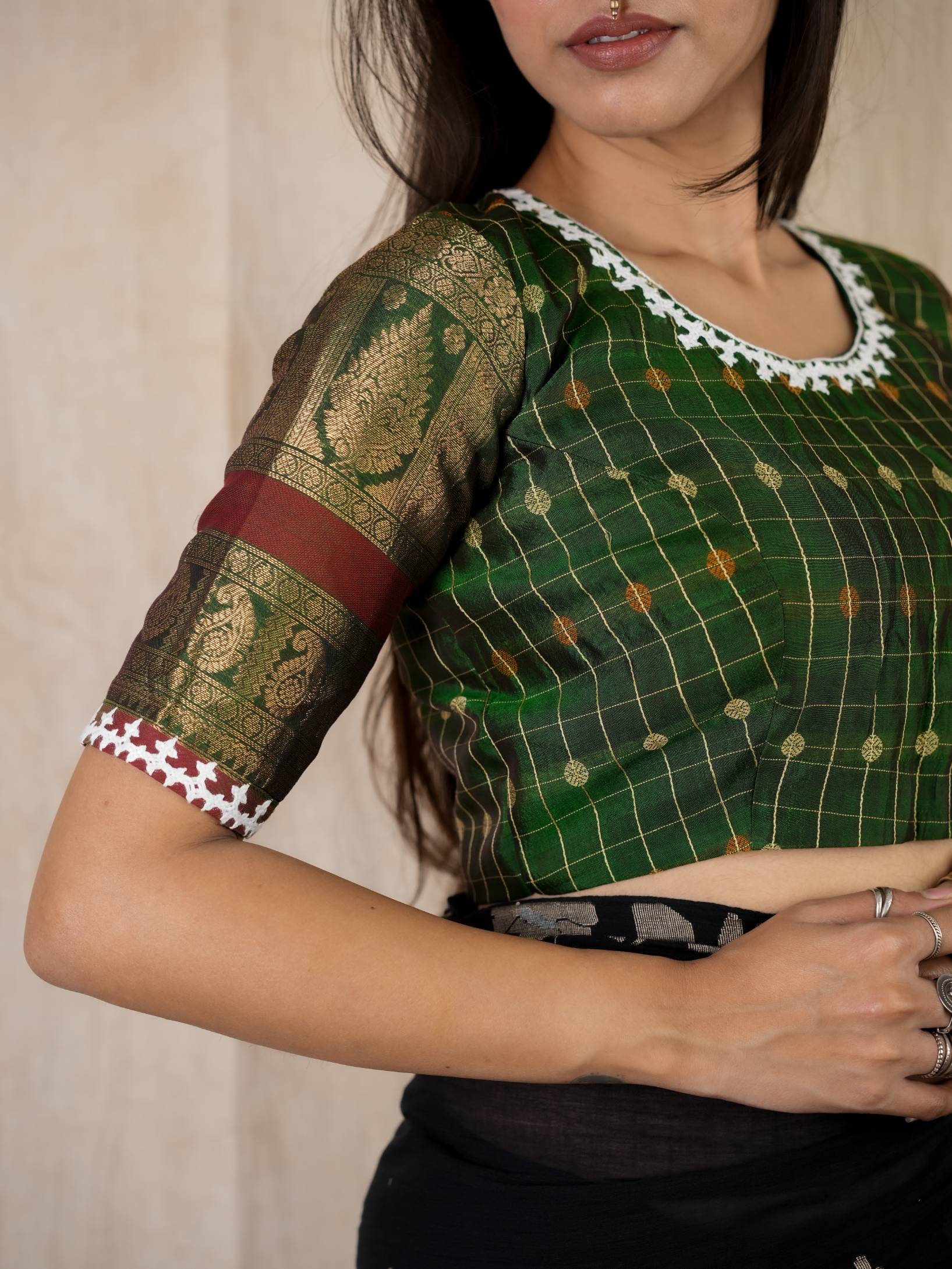 HANDWOVEN SILK BY COTTON KANCHIPURAM WITH KUTCH EMBROIDERY