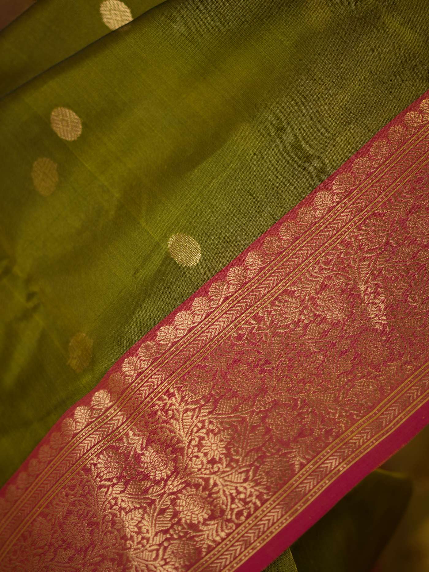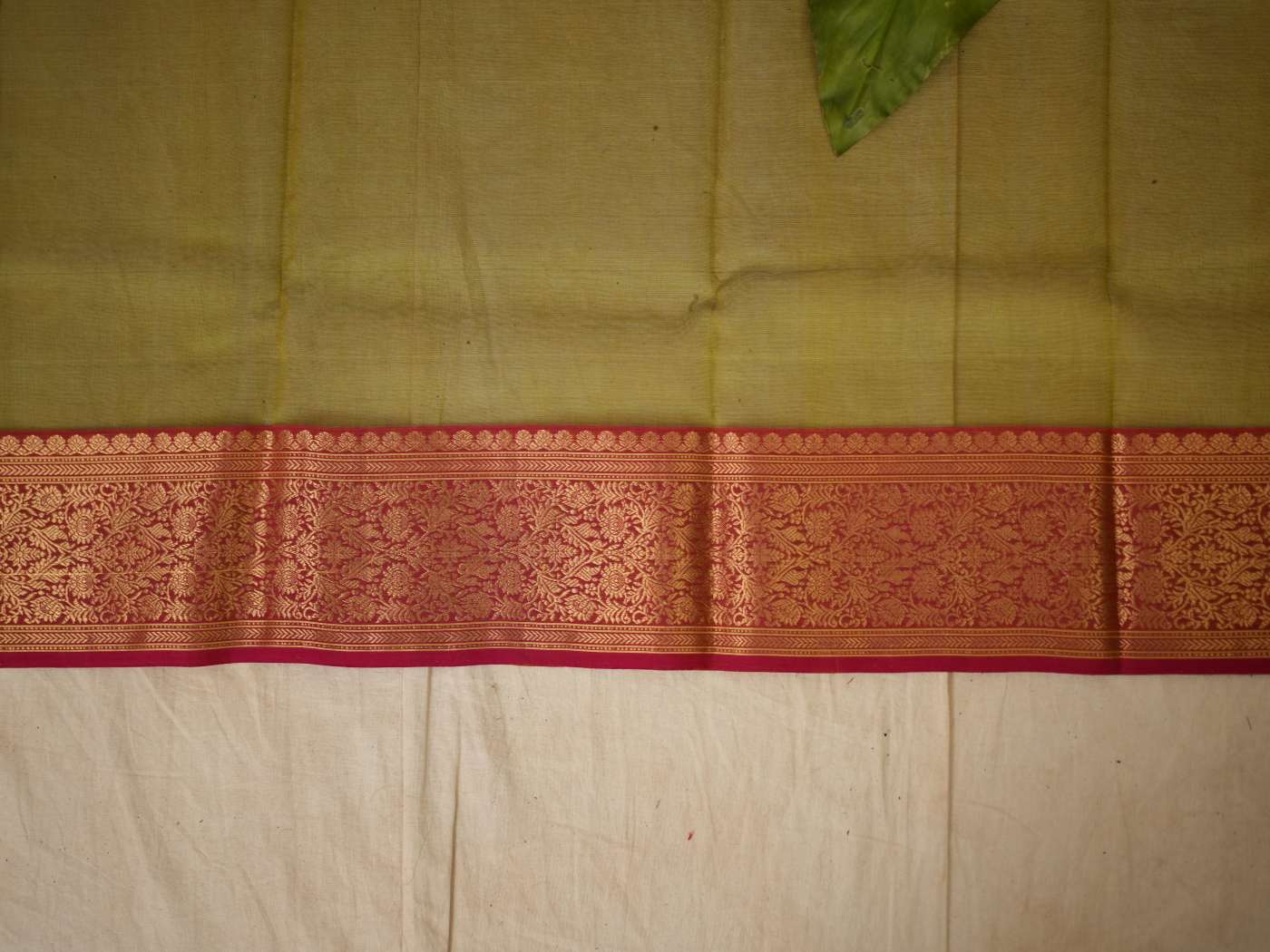 HANDWOVEN OLIVE GREEN COLOUR CHANDERI SILK SAREE WITH 90 CM BLOUSE PIECE