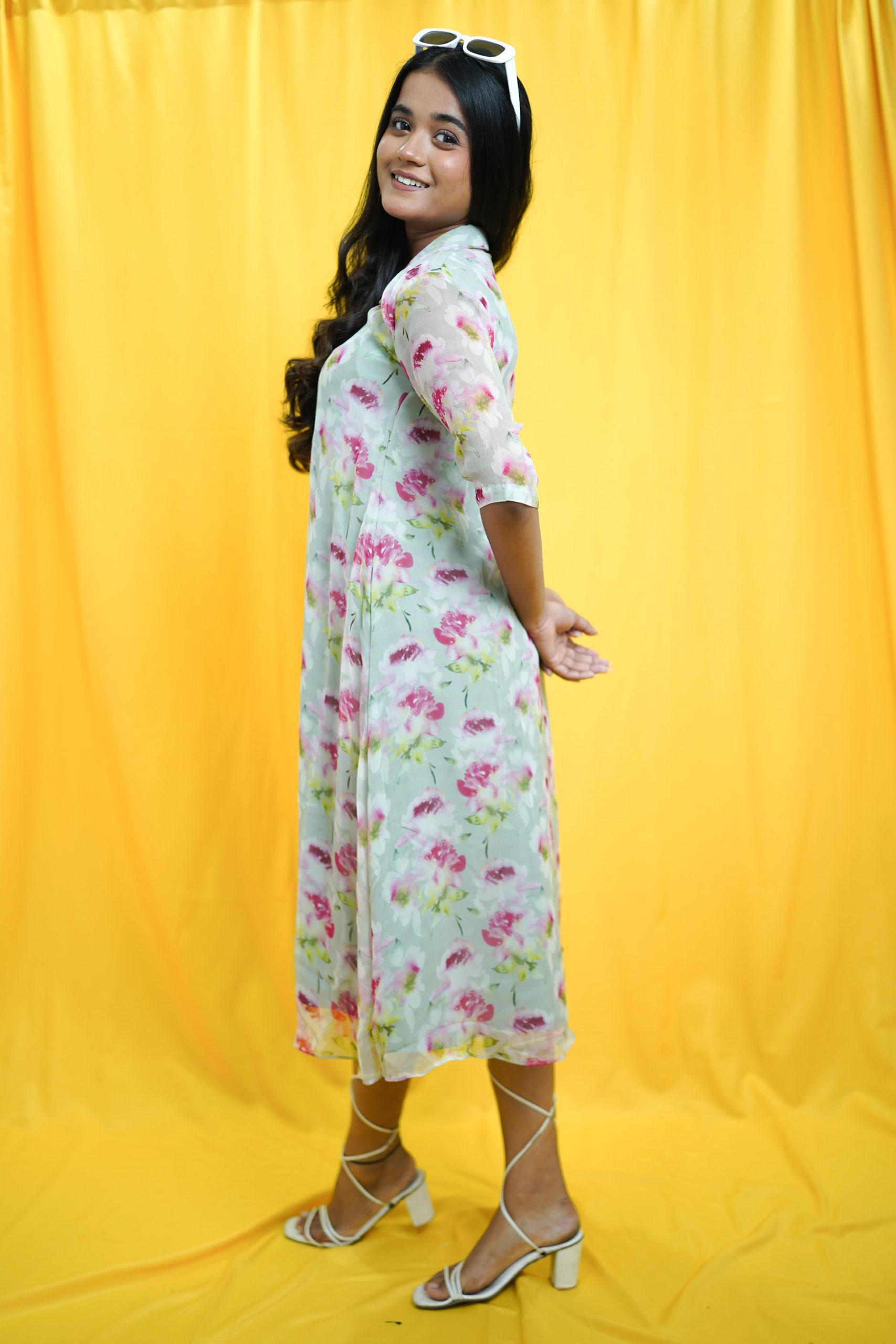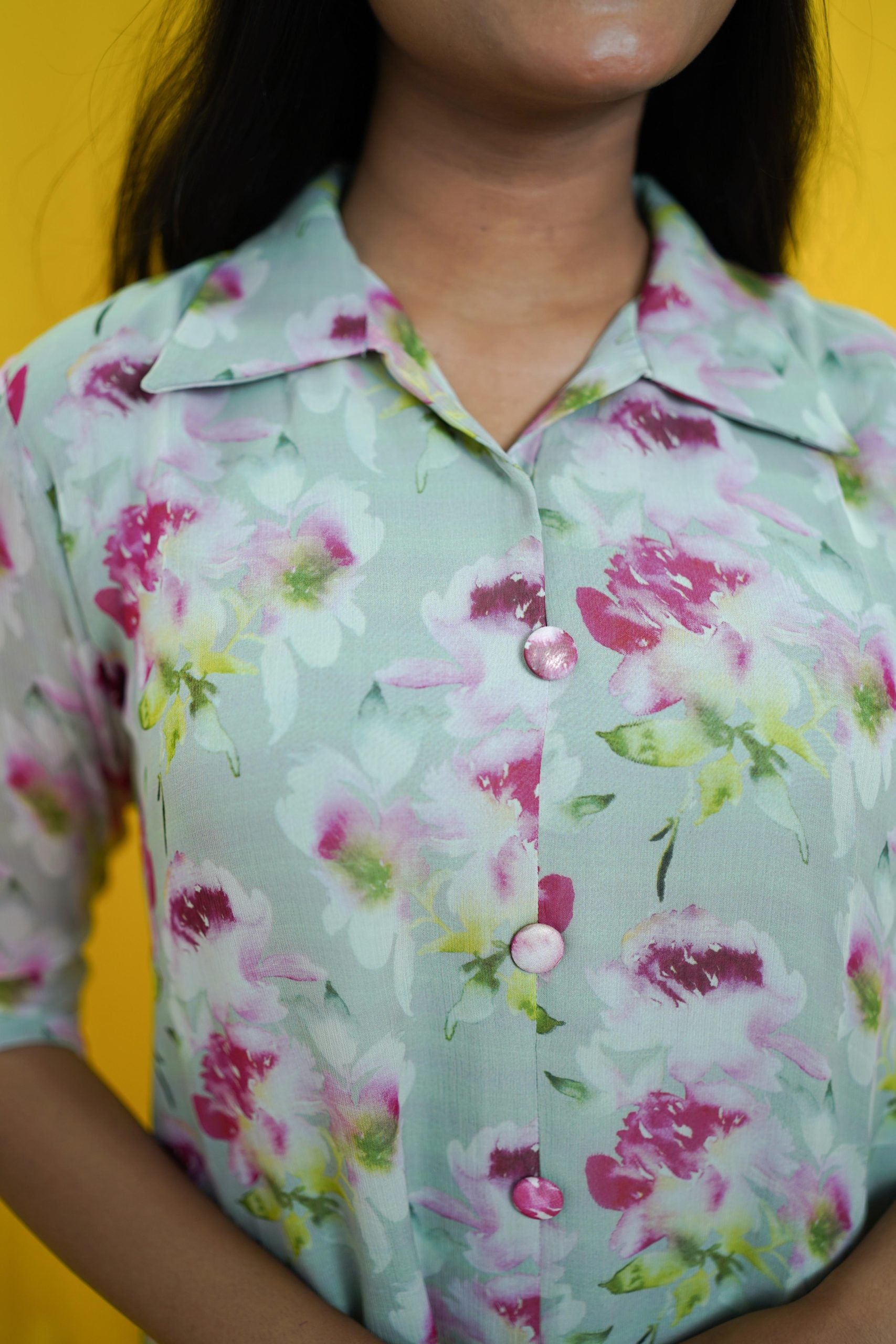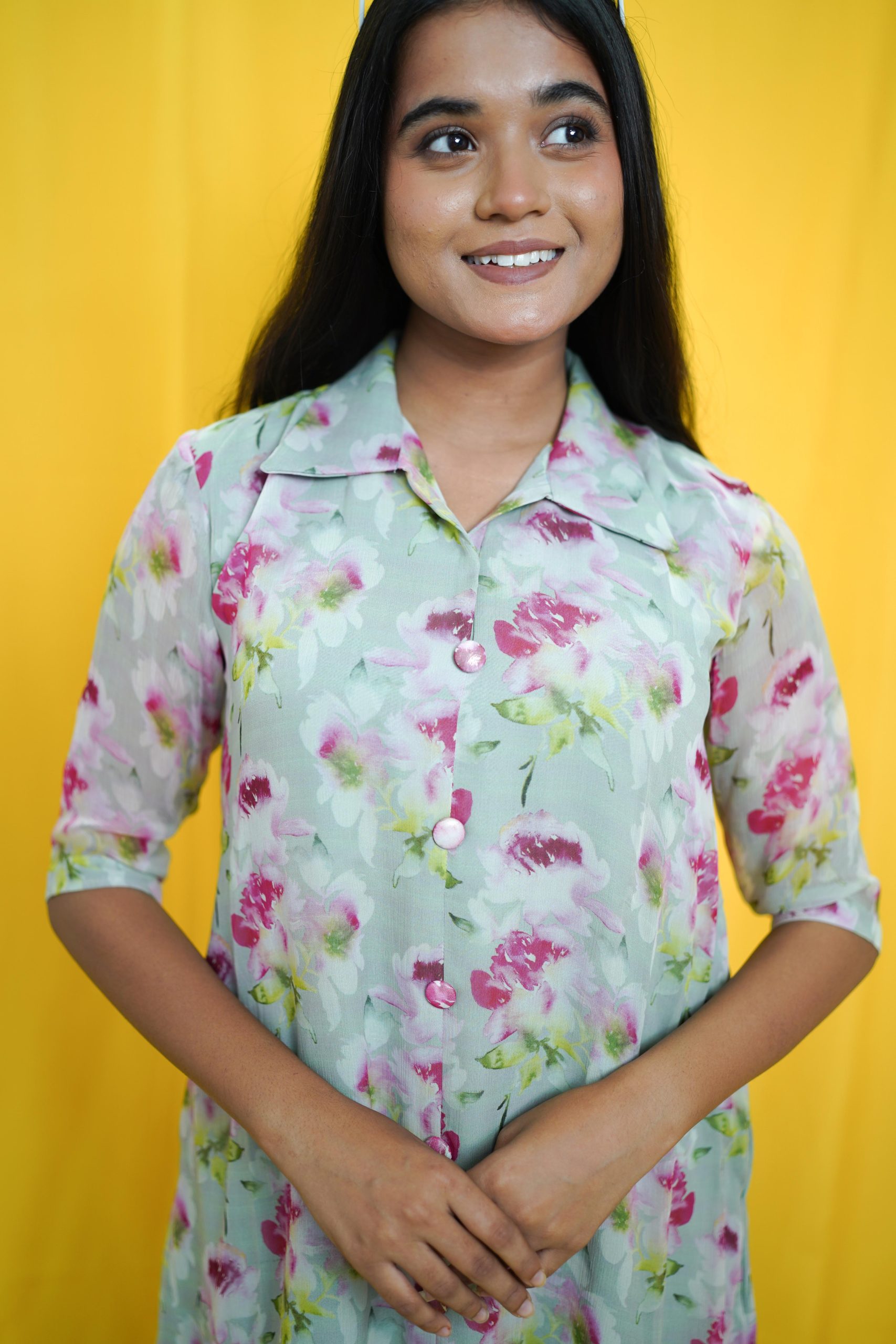 Crafted from chiffon, this loose fit shirt-dress is your go-to choice for effortless comfort and style. Pair it with sandals for a casual day out or layer with accessories for a chic look.