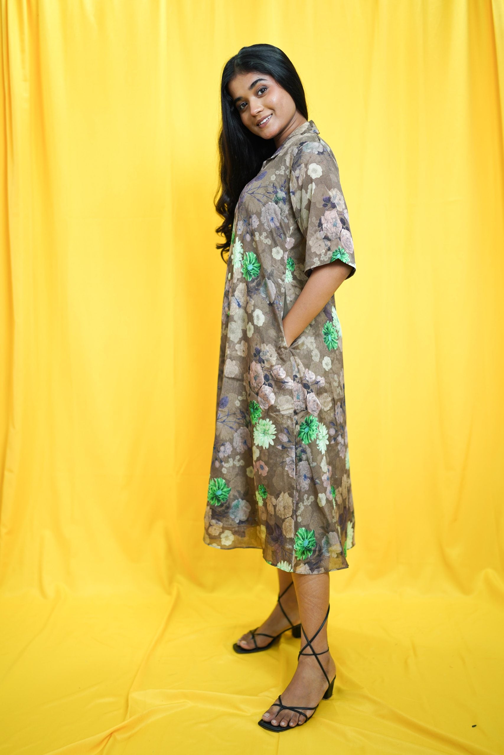 Crafted from chiffon, this loose fit shirt-dress is your go-to choice for effortless comfort and style. Pair it with sandals for a casual day out or layer with accessories for a chic look.