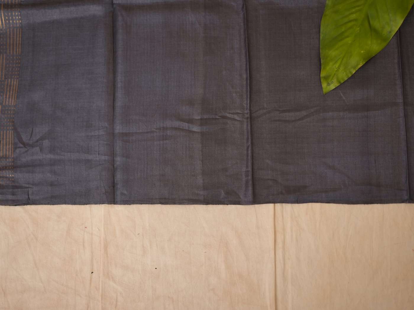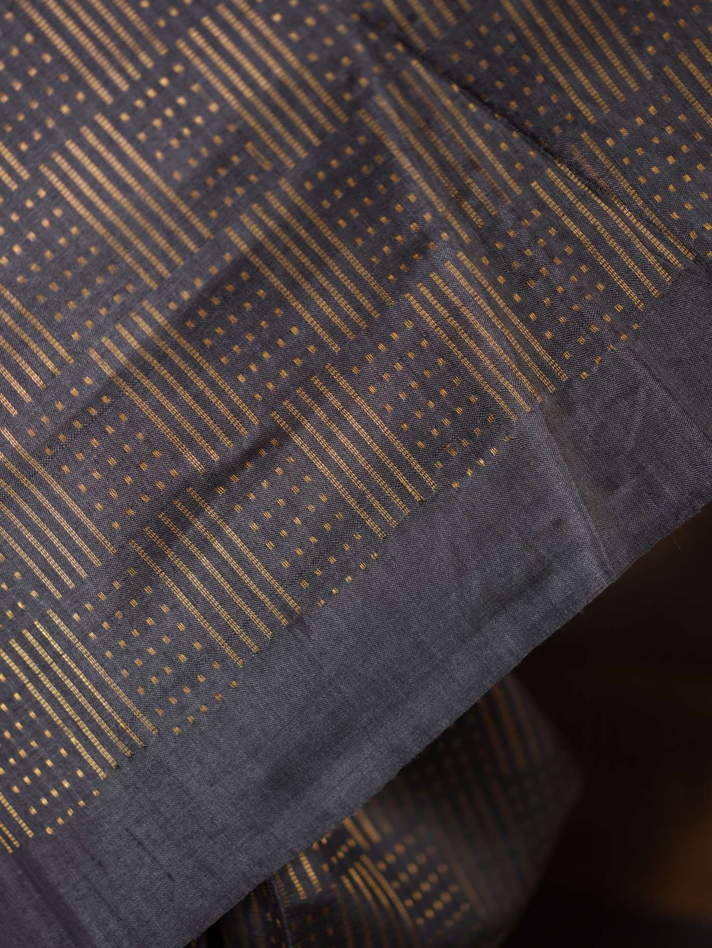 HANDWOVEN DARK GREY COLOUR KOSA SILK SAREE WITH 83 CM BLOUSE PIECE