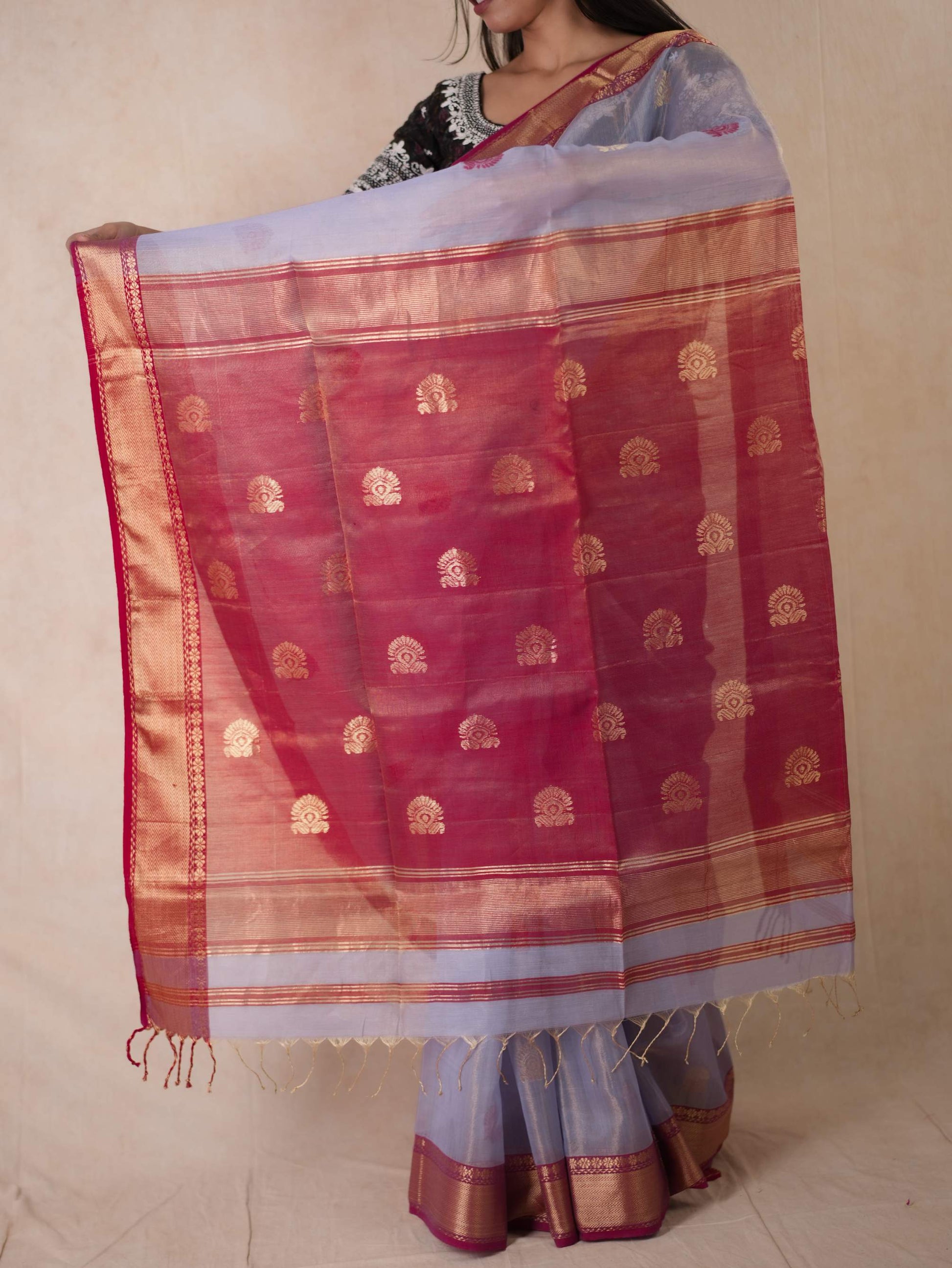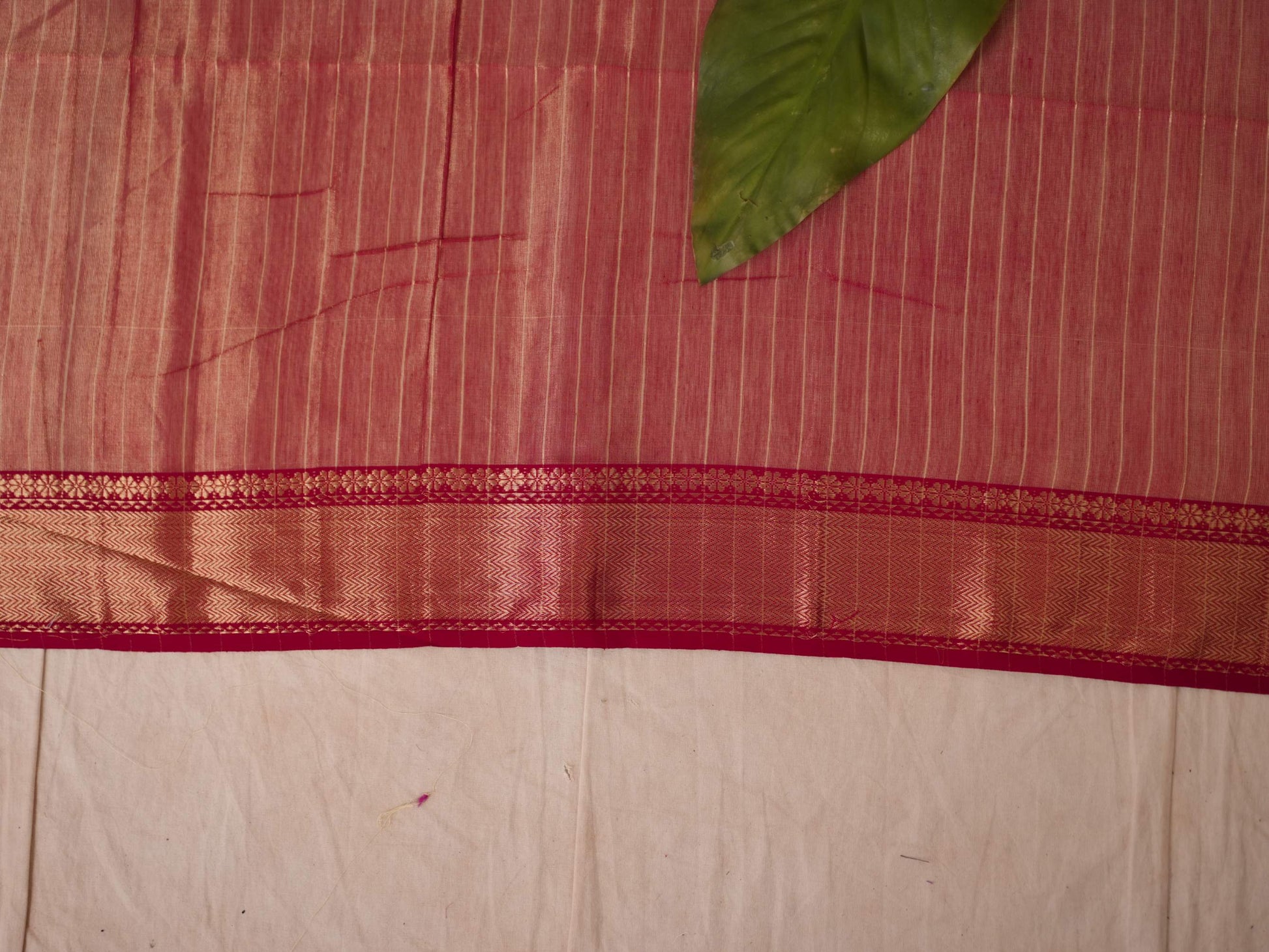 HANDWOVEN RED & LAVENDER COLOUR MAHESWARI TISSUE SAREE WITH 76 CM BLOUSE PIECE