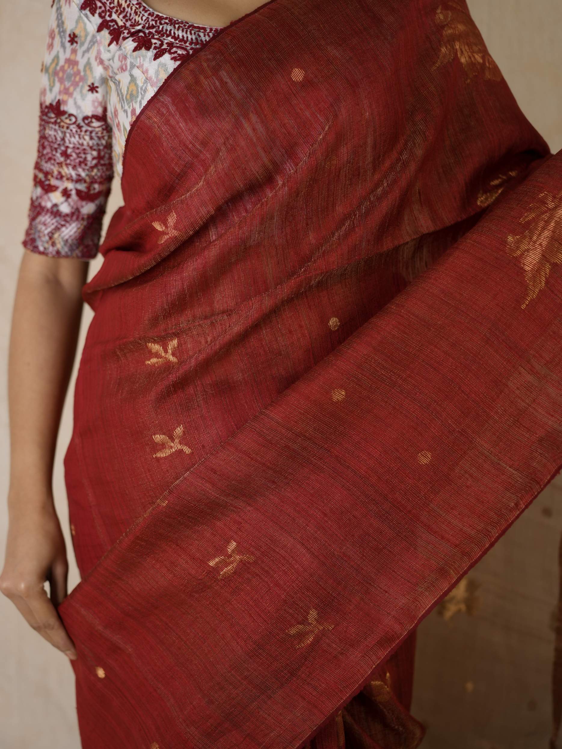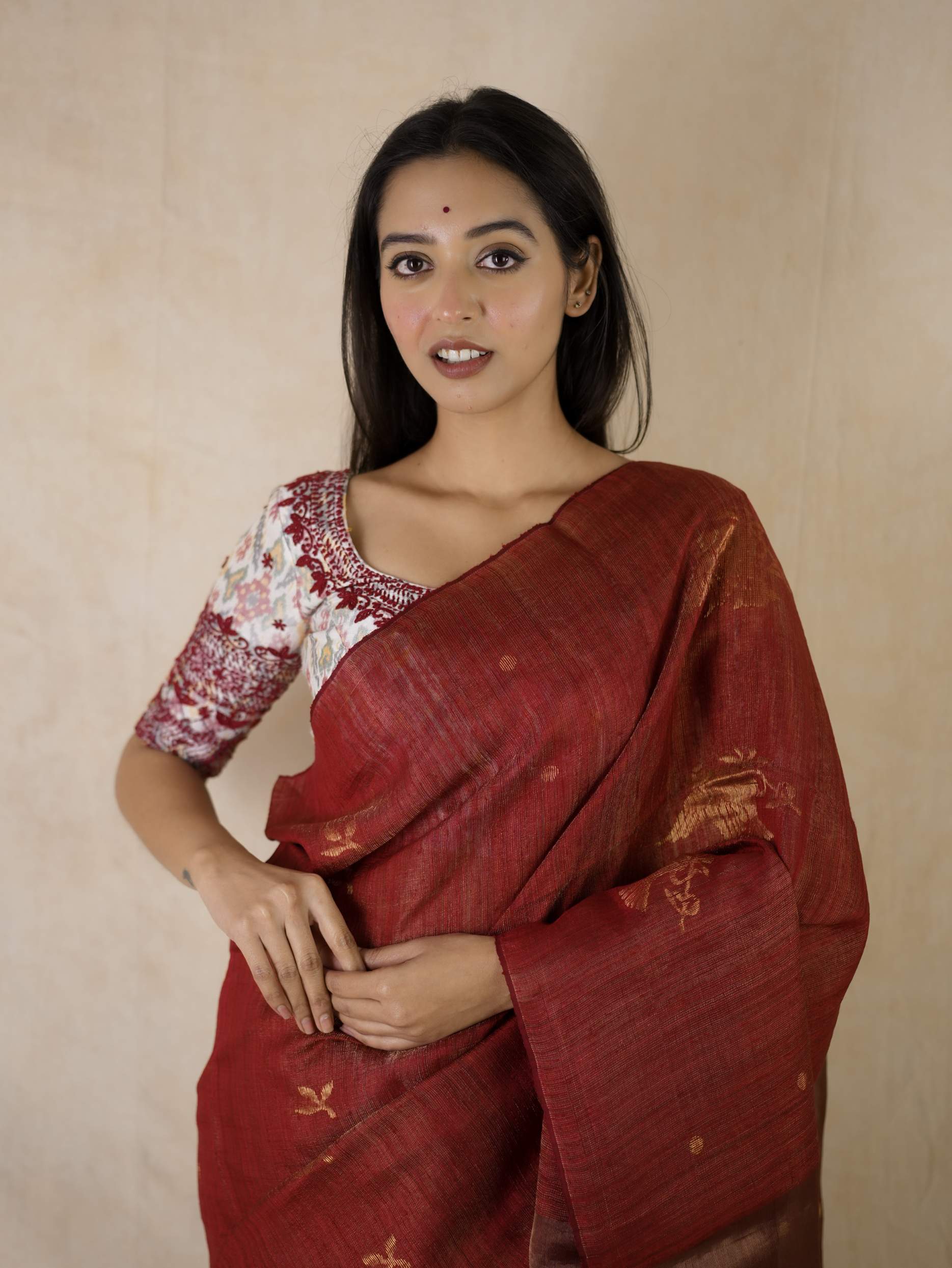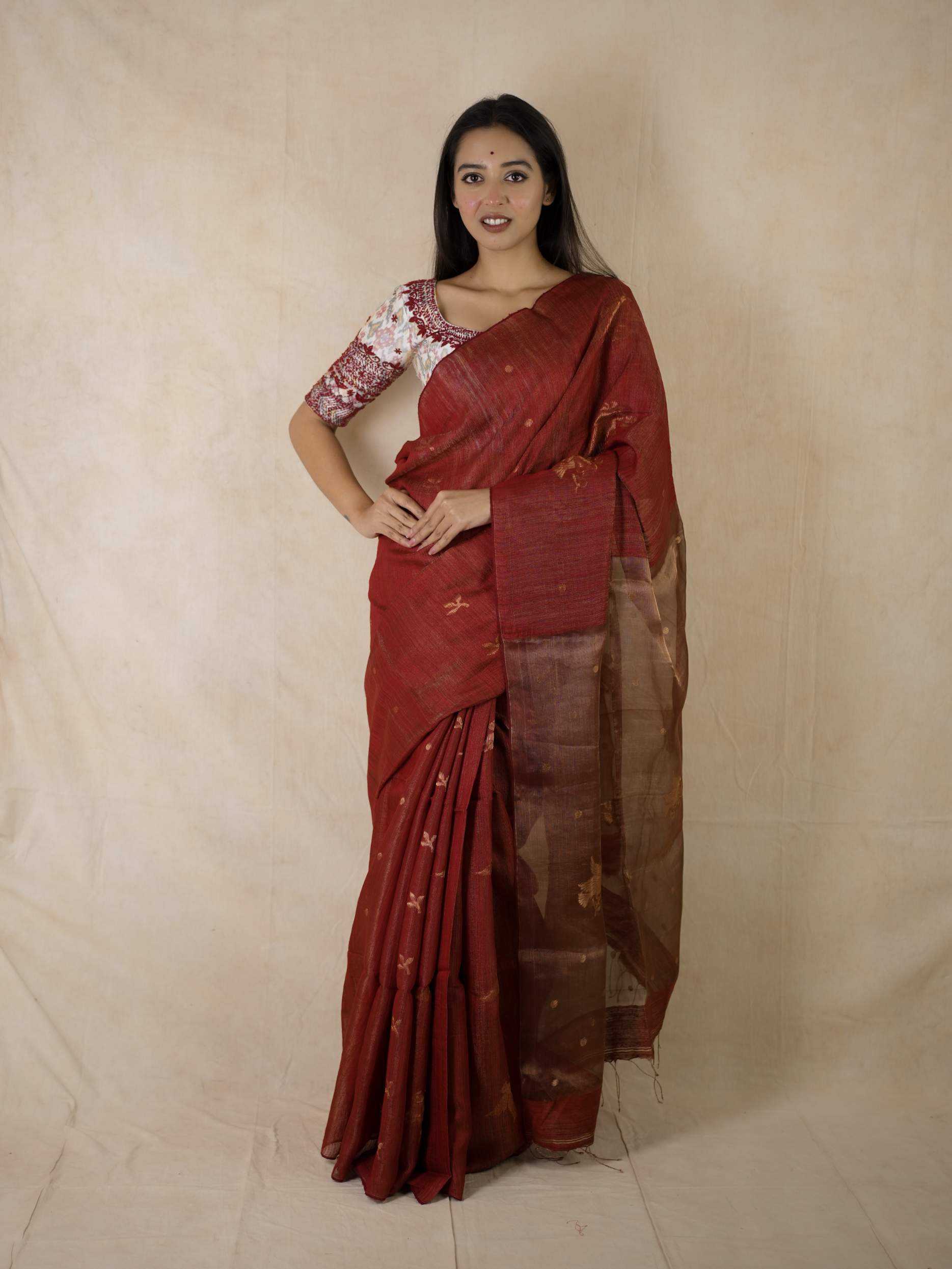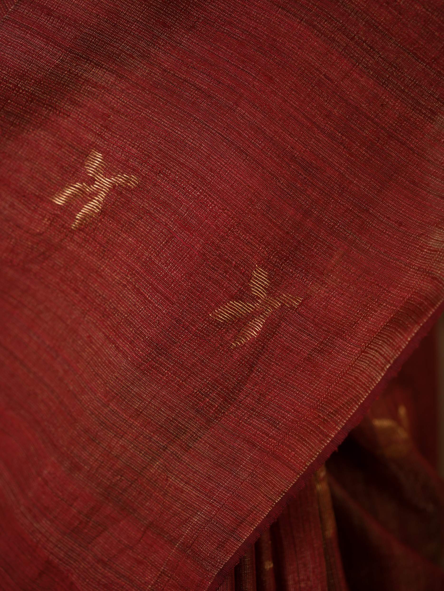 Delve into the timeless charm of reddish maroon Matka Silk Sarees, where tradition meets rustic elegance. Handwoven with a unique texture, these sarees feature exquisite designs and subtle sheen, beautifully enhanced with intricate detailing. Perfect for festive and special occasions, they embody a blend of heritage and sophistication.