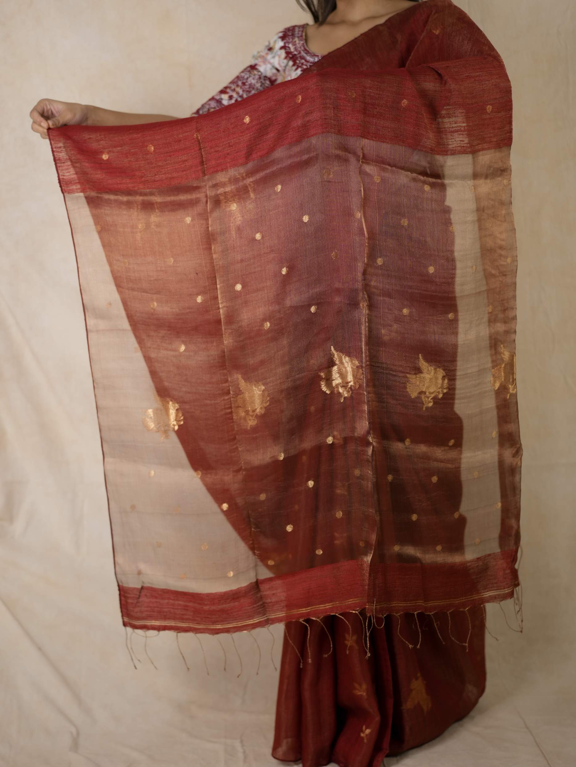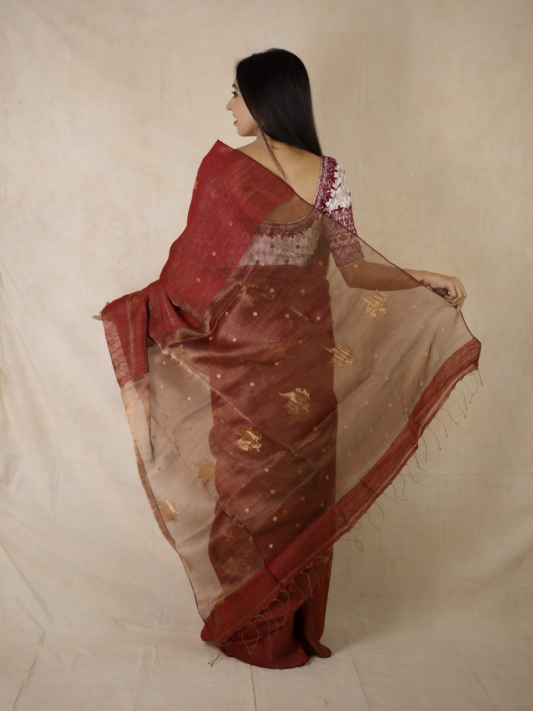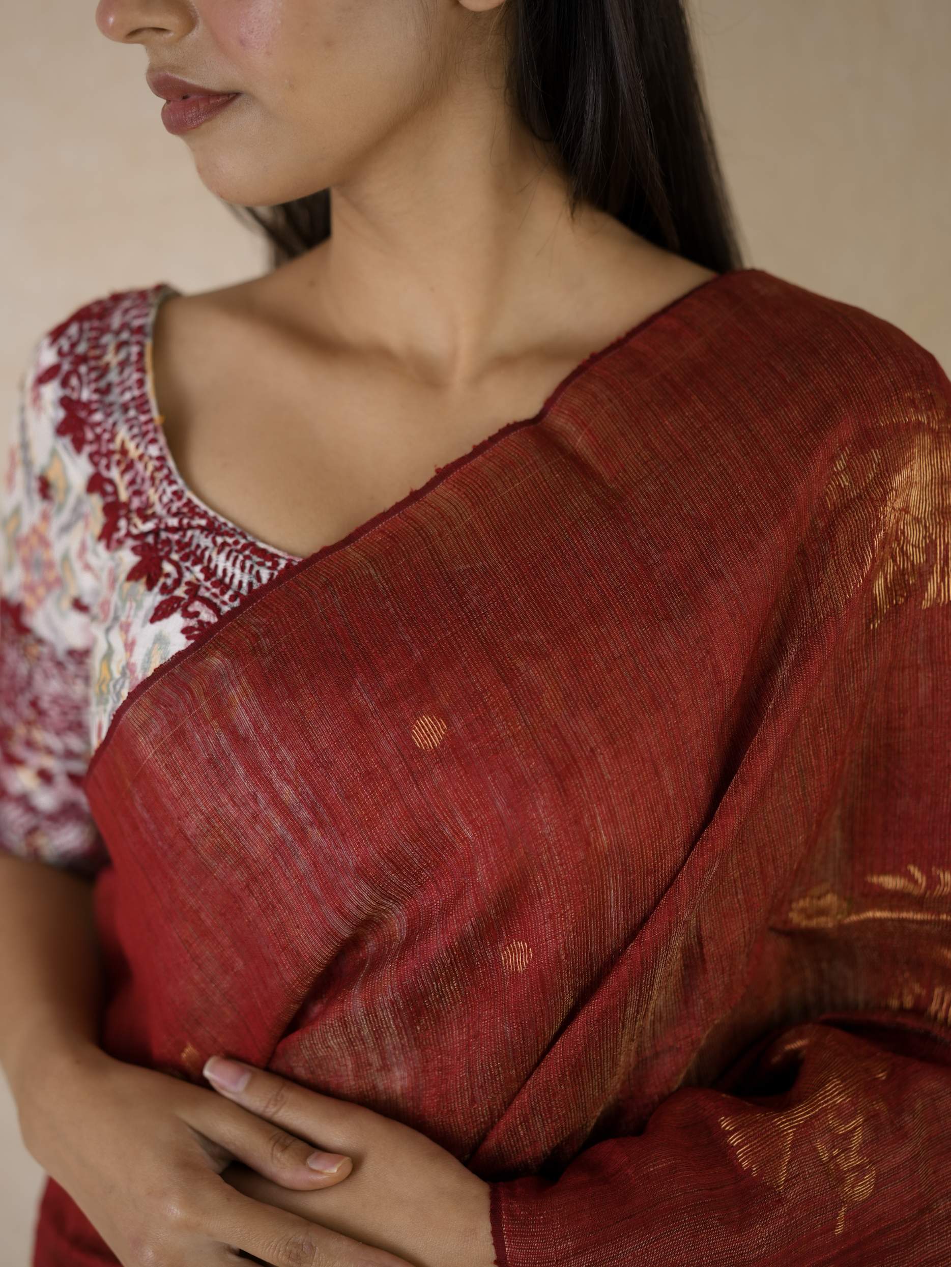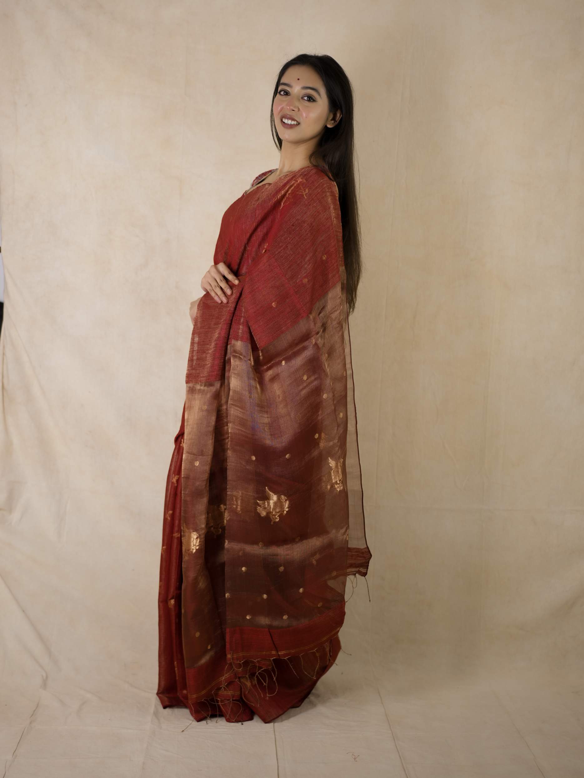Delve into the timeless charm of reddish maroon Matka Silk Sarees, where tradition meets rustic elegance. Handwoven with a unique texture, these sarees feature exquisite designs and subtle sheen, beautifully enhanced with intricate detailing. Perfect for festive and special occasions, they embody a blend of heritage and sophistication.