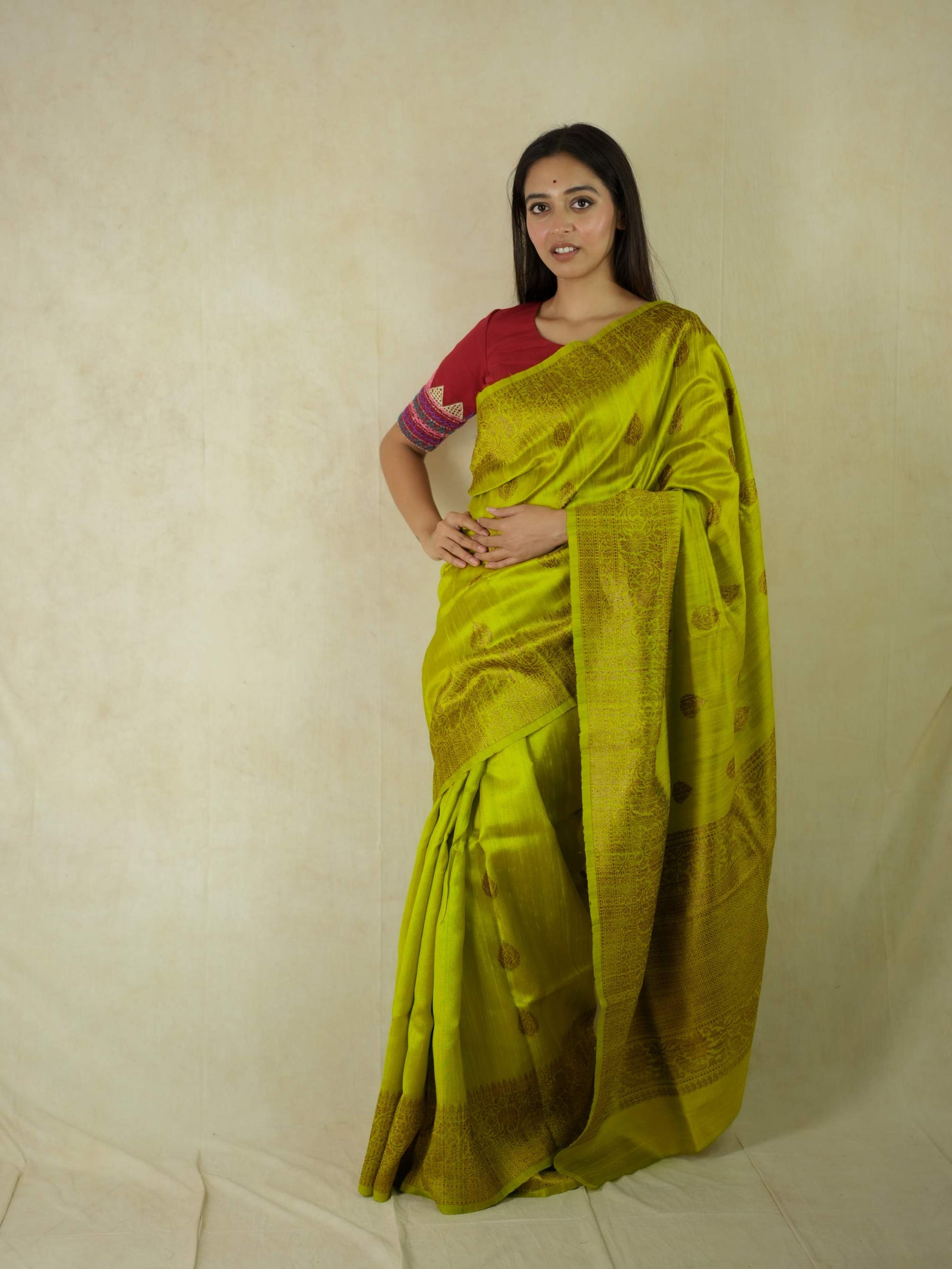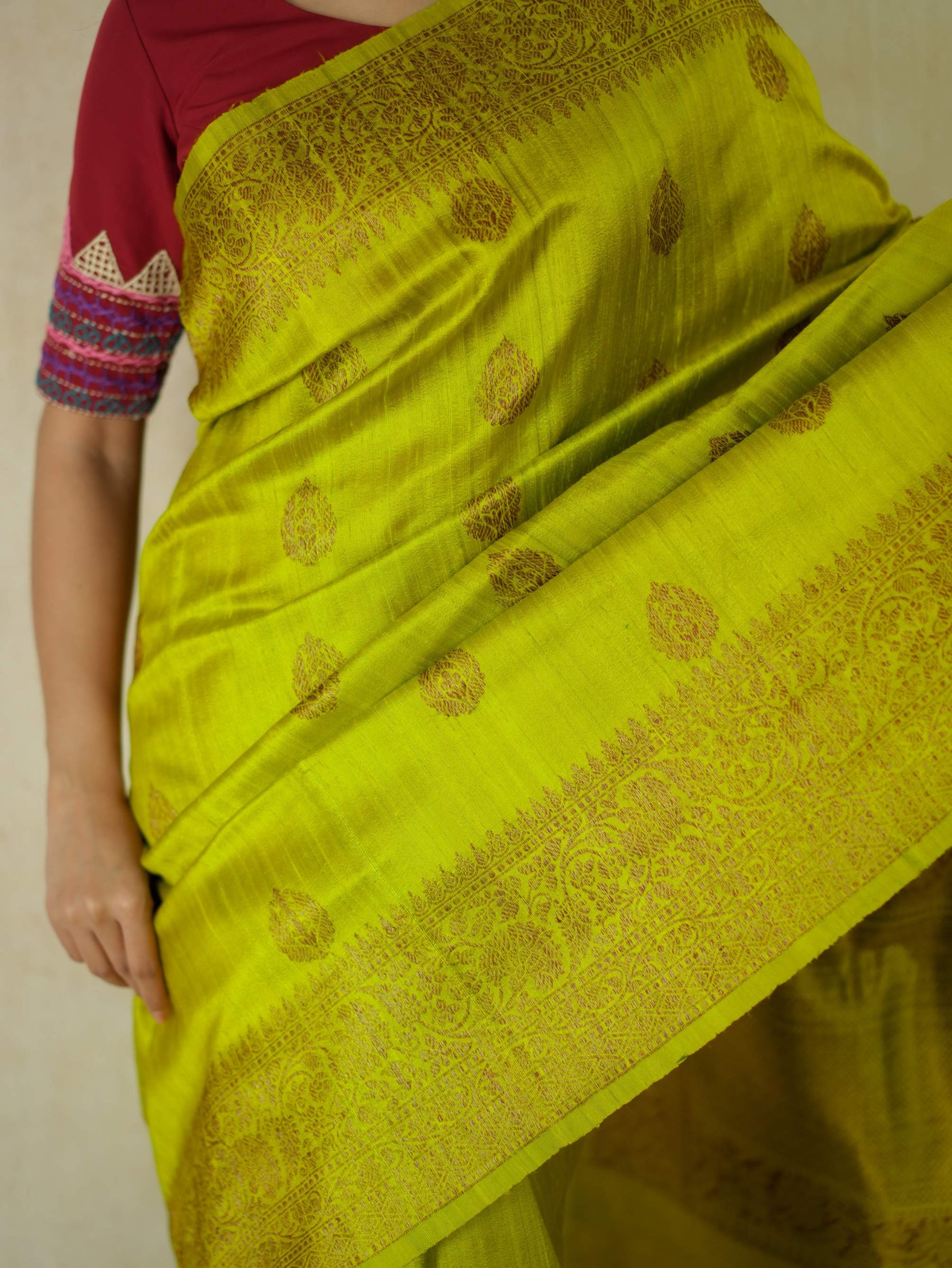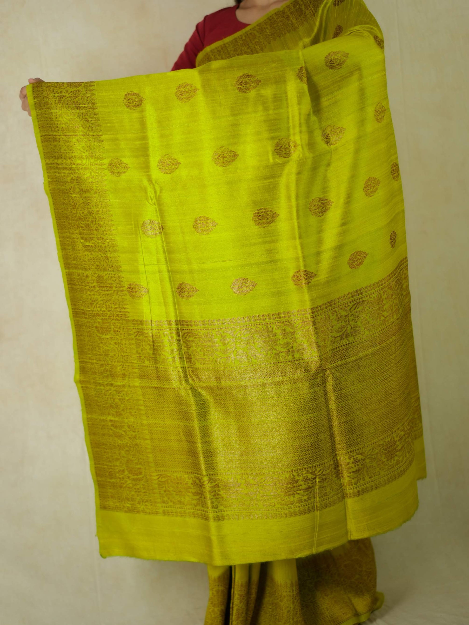 Delve into the sophistication of yellow Dupion Silk Banarasi sarees.The highlight of the saree is the luxurious texture with floral motifs in intricate zari work. The delicate zari work in copper colour on the border give a uniqueness to the appearance of the saree.Perfect for weddings and grand occasions, these sarees exude timeless elegance and rich heritage. Drape yourself in opulence and make every moment unforgettable.