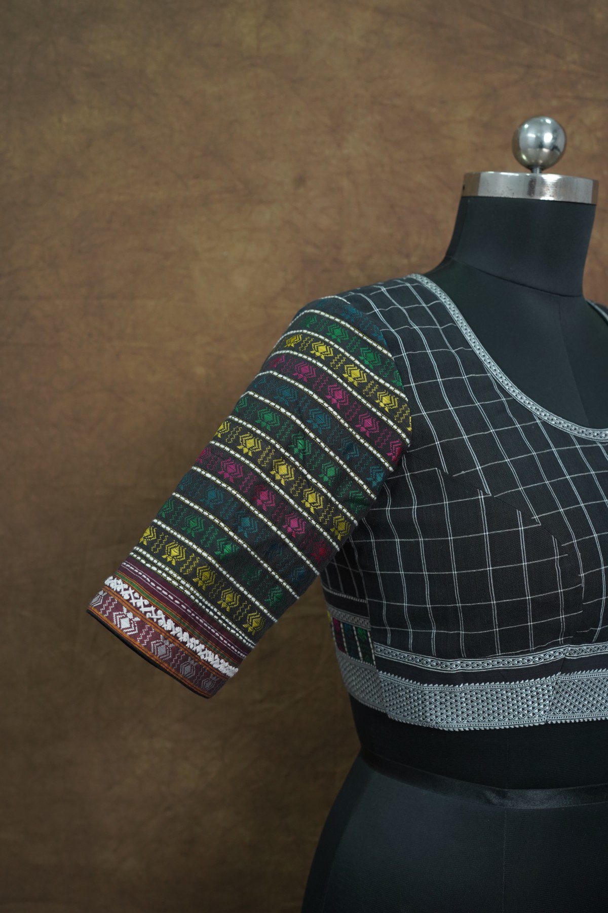 HANDWOVEN COTTON ILKAL WITH HAND EMBROIDERY KHUN SLEEVES