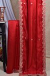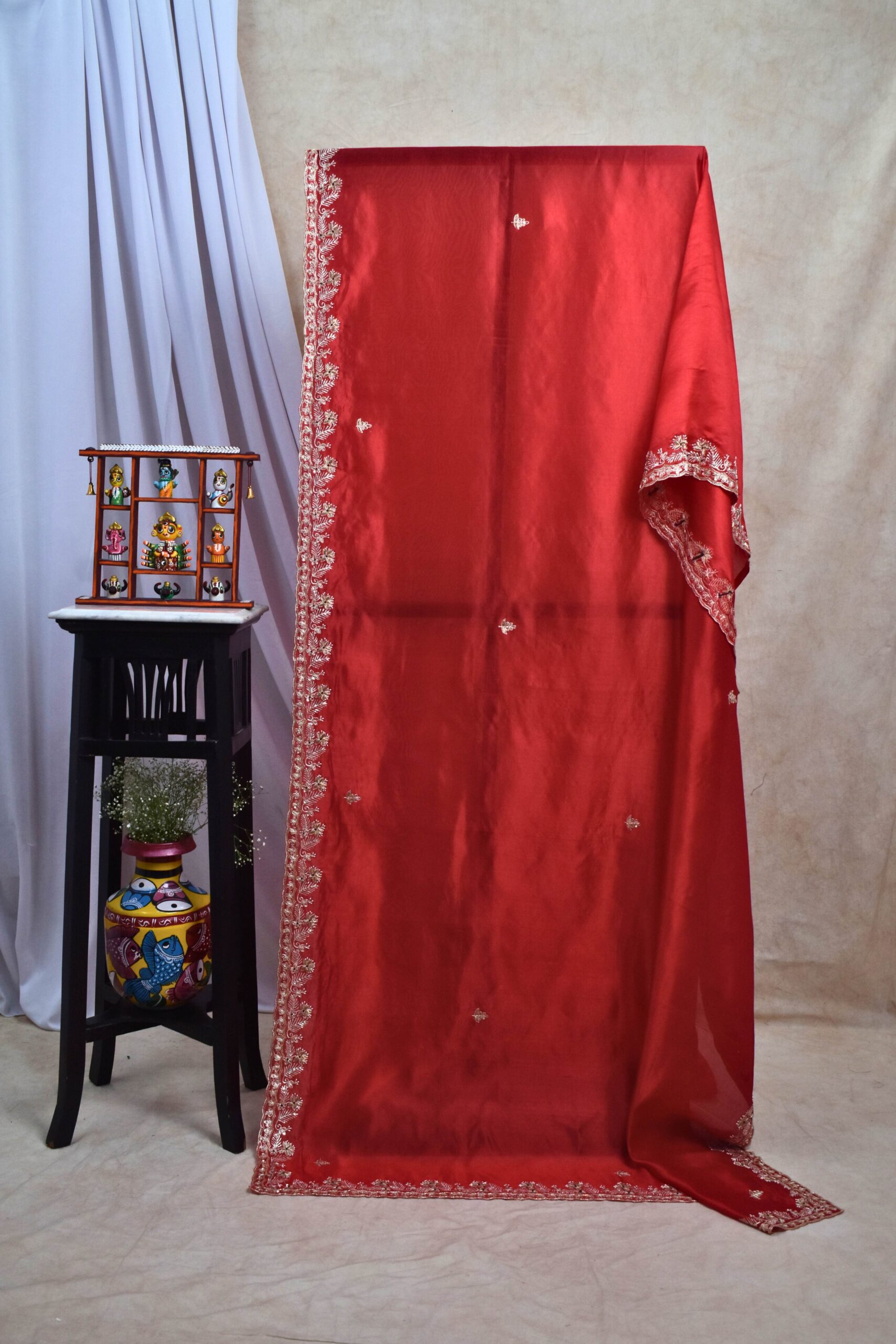 HAND ZARDOSI RED COLOUR TUSSAR SILK SAREE WITH 90 CM BLOUSE PIECE