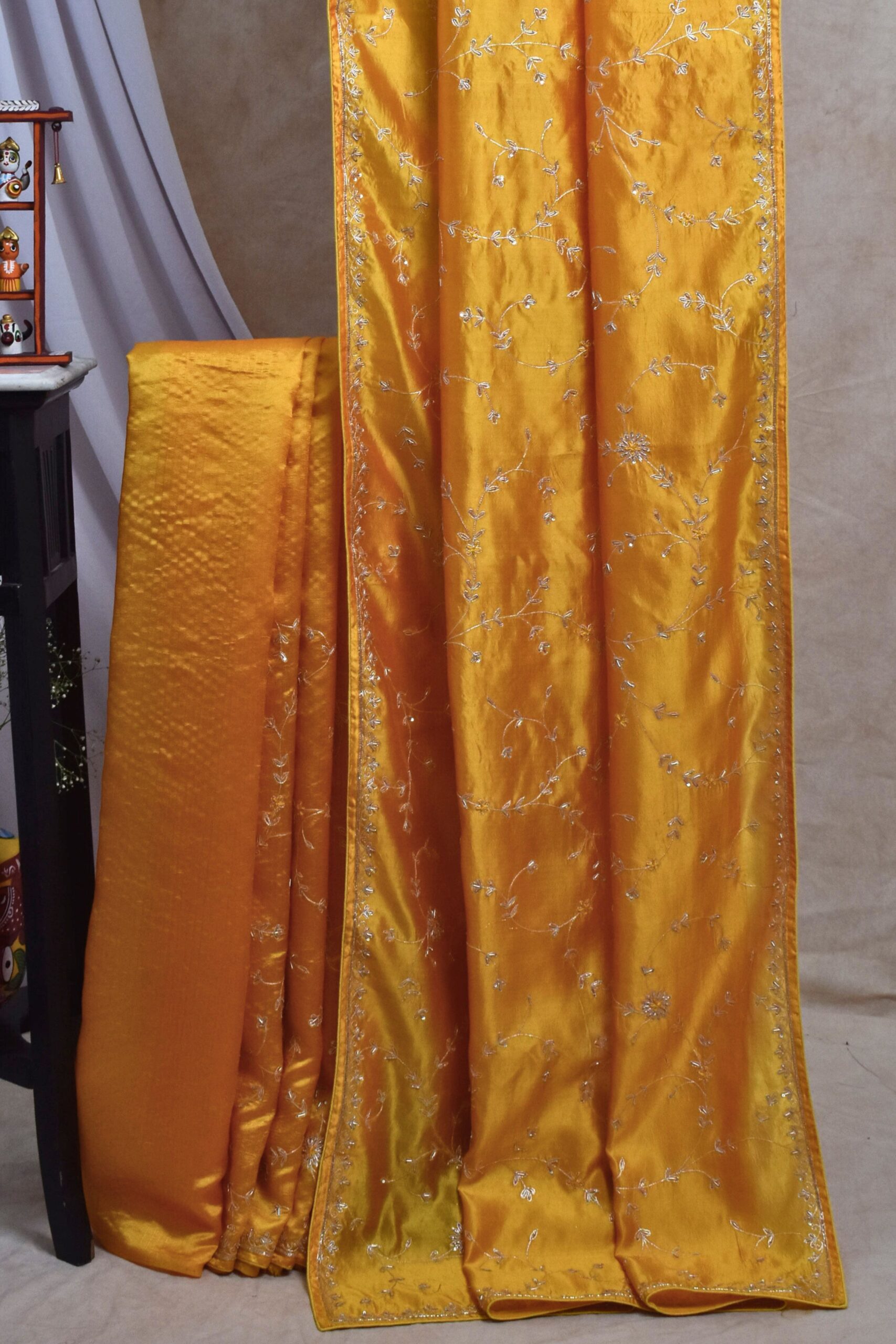 HAND ZARDOSI YELLOW COLOUR TUSSAR SILK SAREE WITH 90 CM BLOUSE PIECE