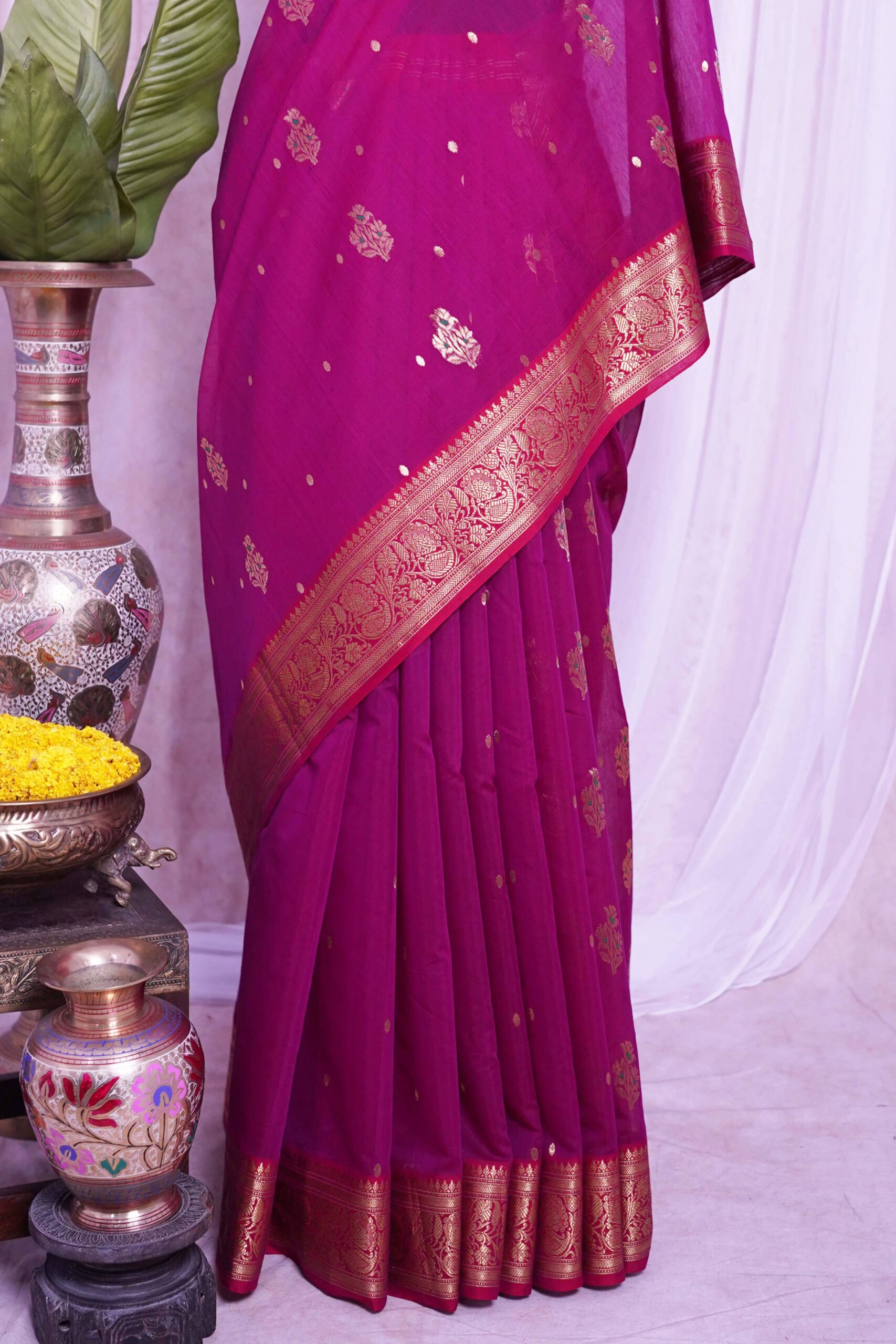 HANDWOVEN DARK PURPLE COLOUR CHANDERI SILK BY COTTON SAREE WITH 75 CM BLOUSE PIECE