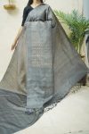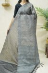 HANDWOVEN GREY COLOUR KOSA SILK SAREE WITH 88 CM BLOUSE PIECE