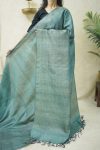 Immerse yourself in the regal charm of our grey-green dual tone handwoven Kosa silk saree from Chhattisgarh, adorned with a shimmering golden zari work across the body. Renowned for its natural sheen and refined elegance, this saree is a true reflection of Chhattisgarh’s rich weaving heritage. Perfect for special occasions, it embodies timeless sophistication and the unmatched artistry of traditional craftsmanship.