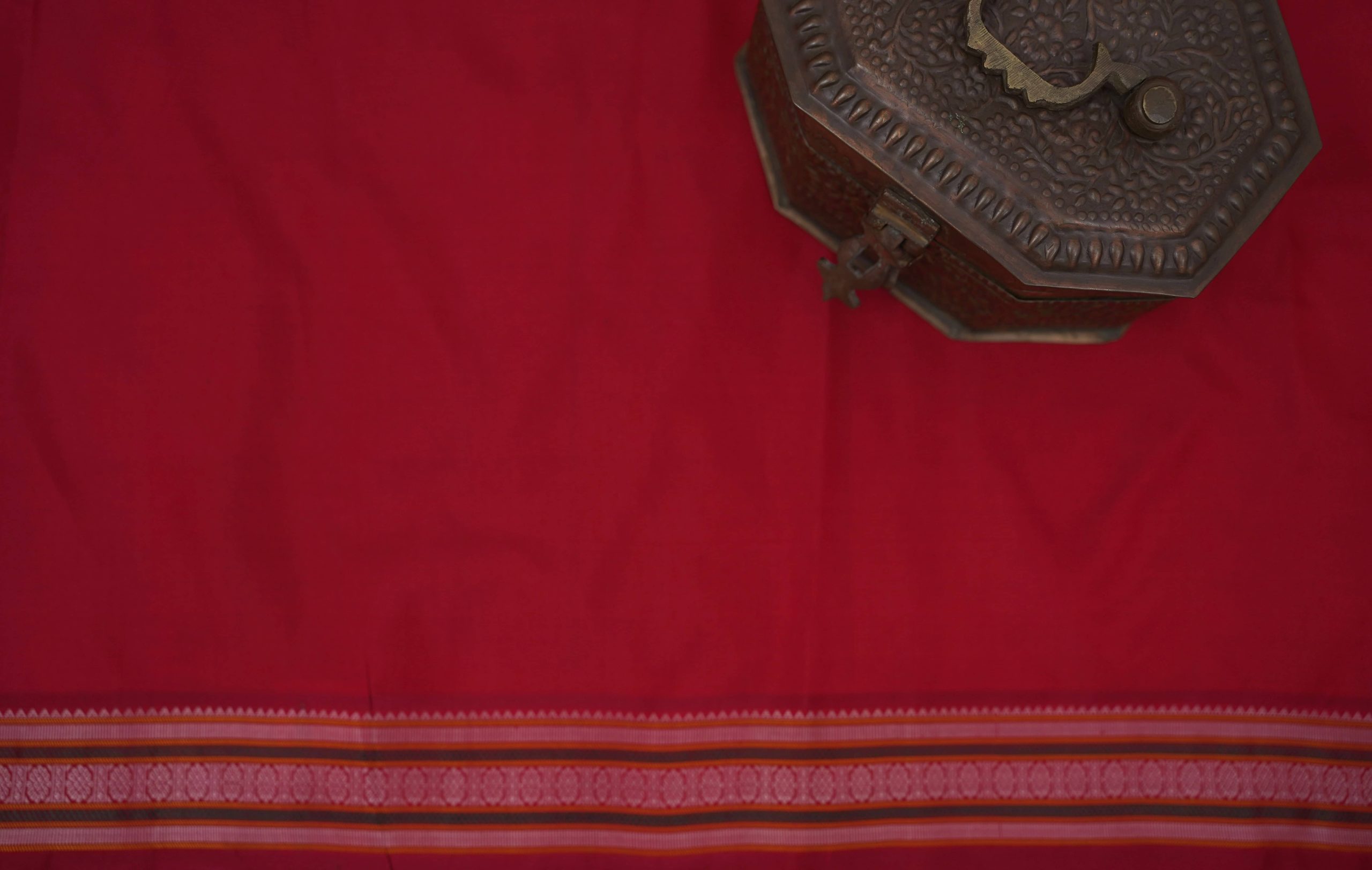 HANDWOVEN RED GREEN DUAL TONE KANJEEVARAM SILK SAREE WITH 76 CM BLOUSE PIECE