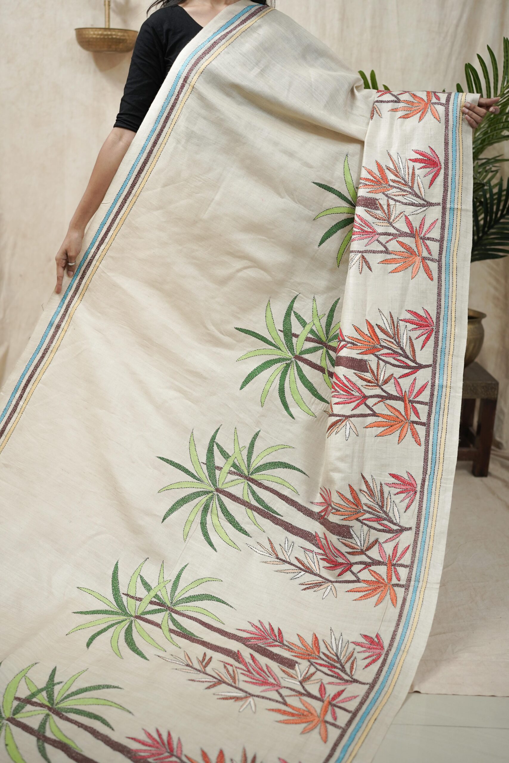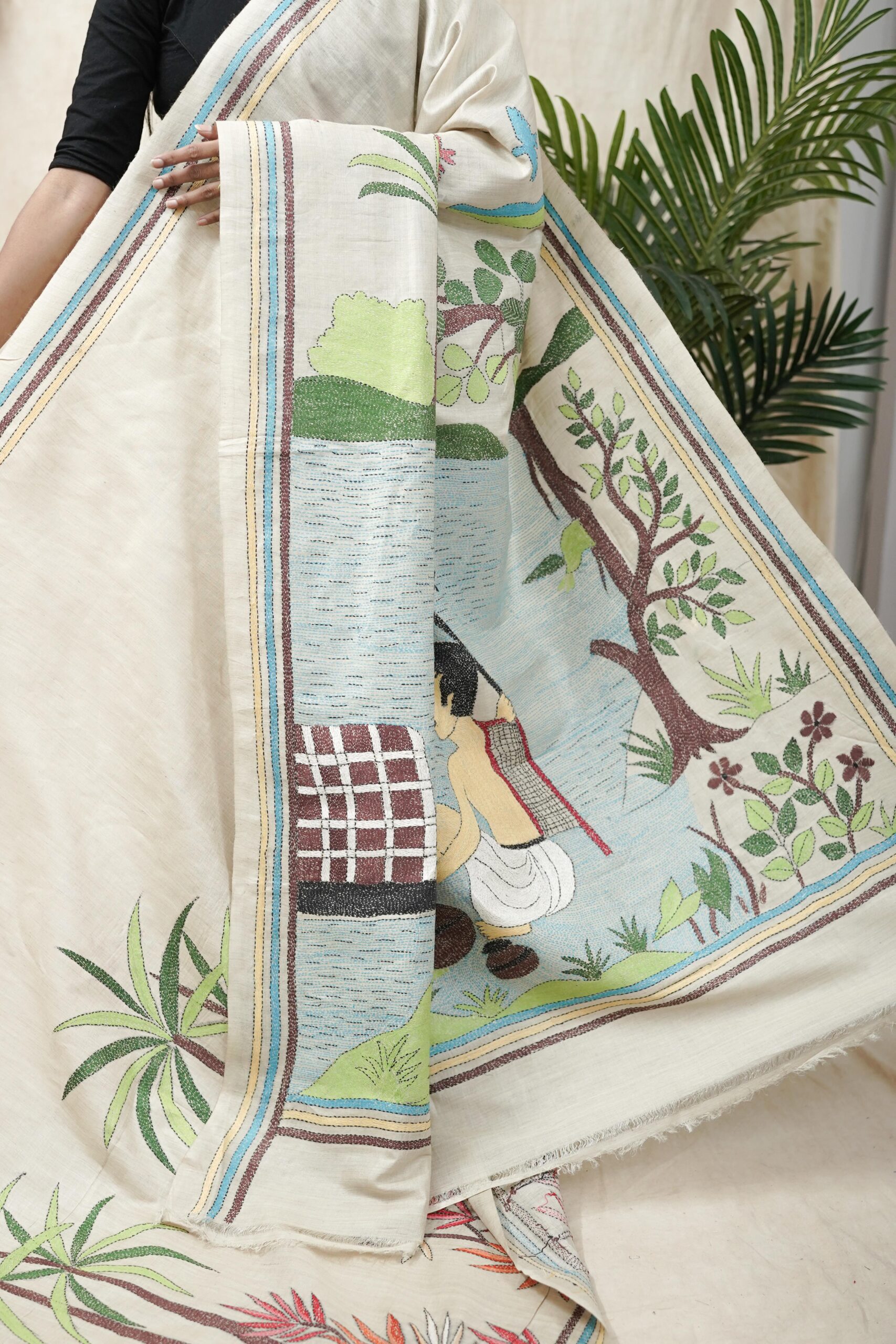 3. HANDWOVEN OFF-WHITE COLOUR KANTHA...