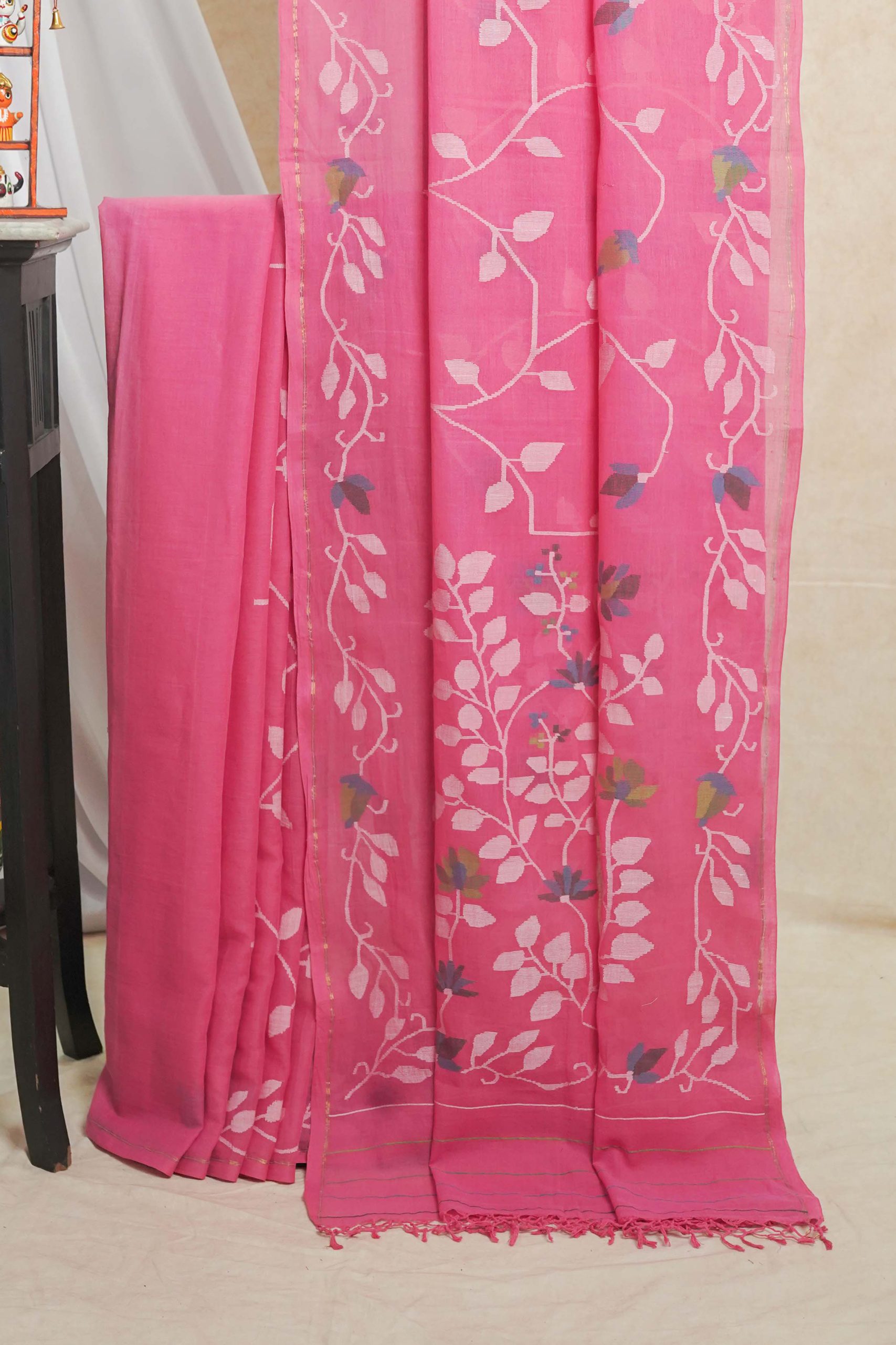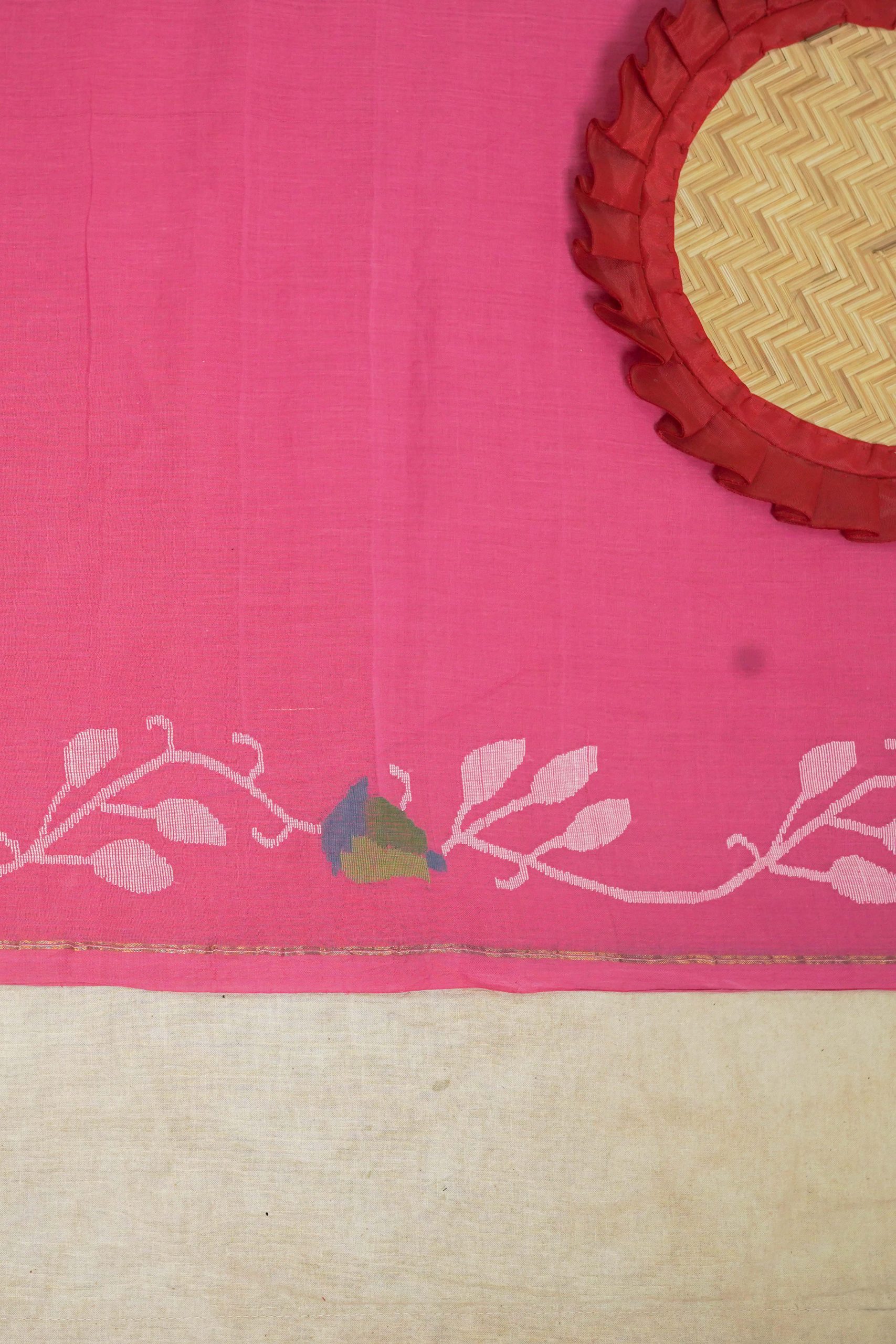 HANDWOVEN PINK COLOUR COTTON JAMDANI SAREE WITH 88 CM BLOUSE PIECE