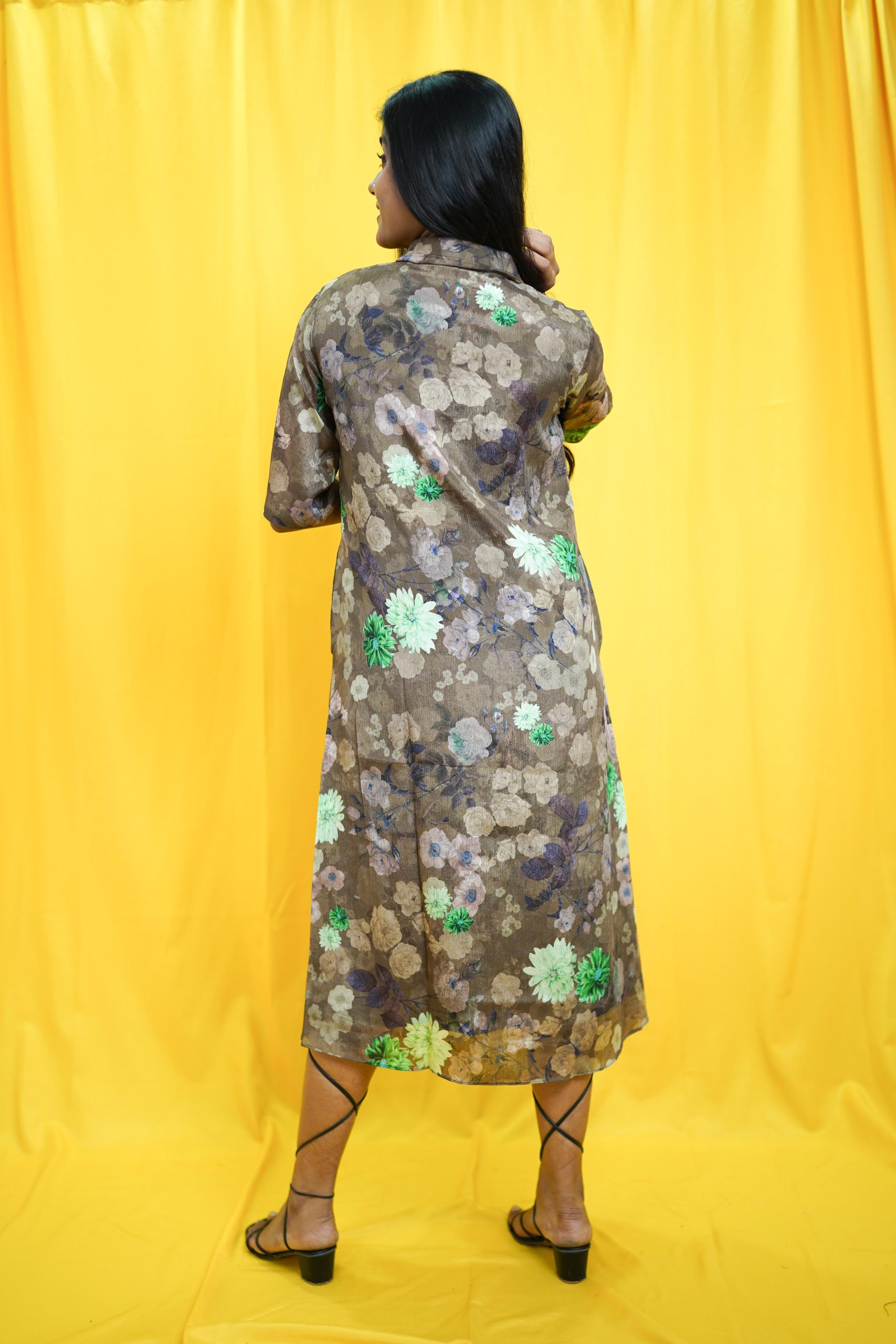 Crafted from chiffon, this loose fit shirt-dress is your go-to choice for effortless comfort and style. Pair it with sandals for a casual day out or layer with accessories for a chic look.